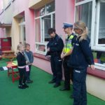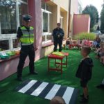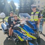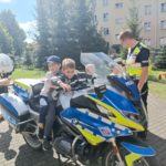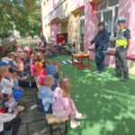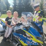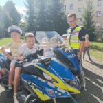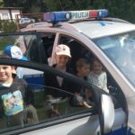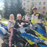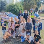 W poniedziałek, 15 września 2025 r., ogromną radość naszym przedszkolakom sprawiło spotkanie z Policjantami, którymi byli nasi Rodzice – Pani Agnieszka, mama Ninki i Pan Karol, tatuś Kacperka. Funkcjonariusze policji utrwalili z dziećmi podstawowe zasady bezpieczeństwa w ruchu drogowym. Dzieci chętnie odpowiadały na pytania i wykazały się dużą wiedzą w tej tematyce. Największe jednak emocje wzbudziło oglądanie policyjnego radiowozu i motocykla. Na zakończenie spotkania każdy przedszkolak otrzymał odblask i kolorowankę, które mają przypominać o zasadach bezpieczeństwa na co dzień.