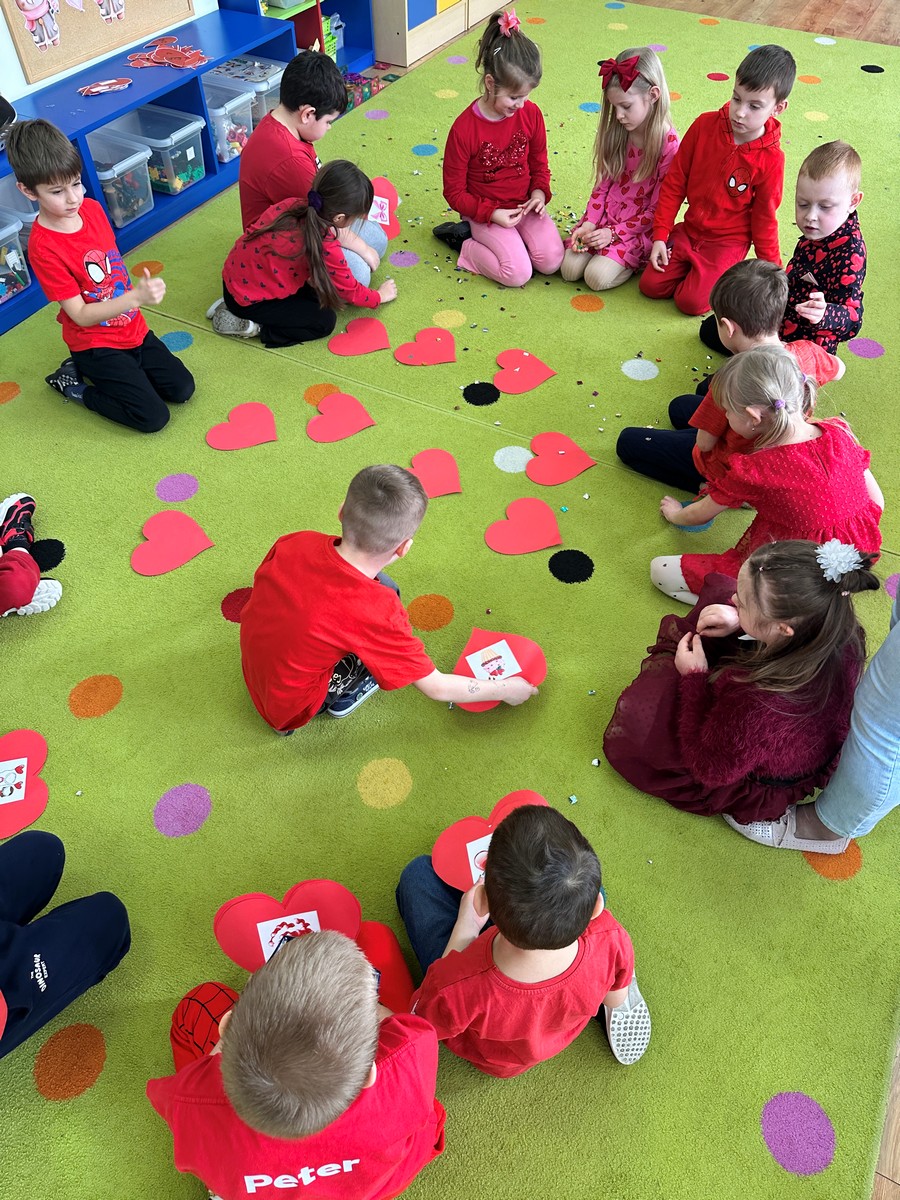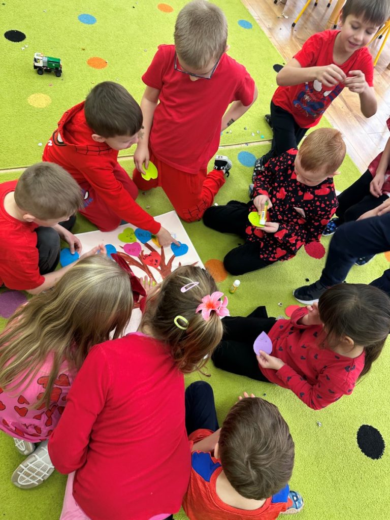 Dzień Przyjaźni to radosne i kolorowe święto, które i w tym roku było celebrowane w naszej grupie. Takie dni mają na celu promowanie miłości, przyjaźni i życzliwości wśród przedszkolaków, dlatego nie zabrakło zabaw tematycznych, wspólnego tworzenia „Drzewa przyjaźni” , tańców w rytmie walentynkowych piosenek, czy wspólnego biesiadowania. Atmosfera była bardzo przyjazna i pełna uśmiechów. Takie święto pozwala dzieciom wyrażać emocje i uczyć się wartości takich jak współpraca, empatia i szacunek dla innych.