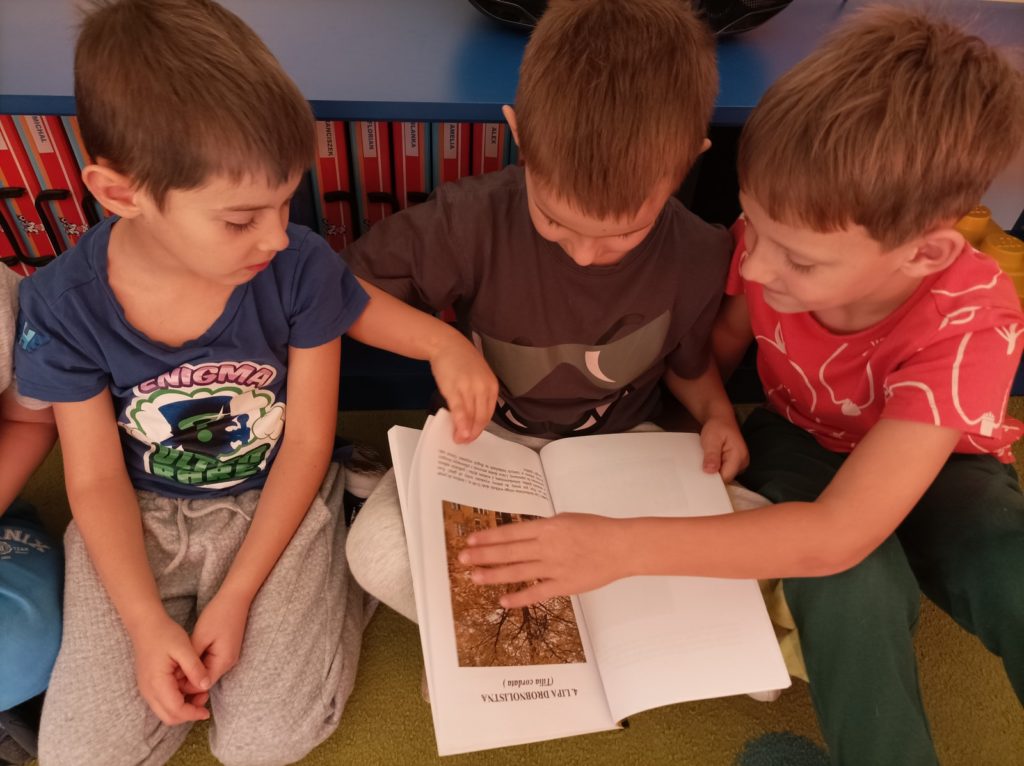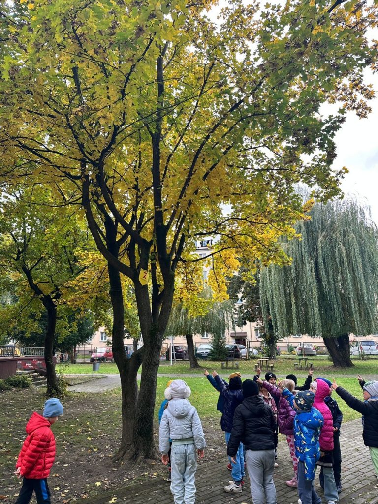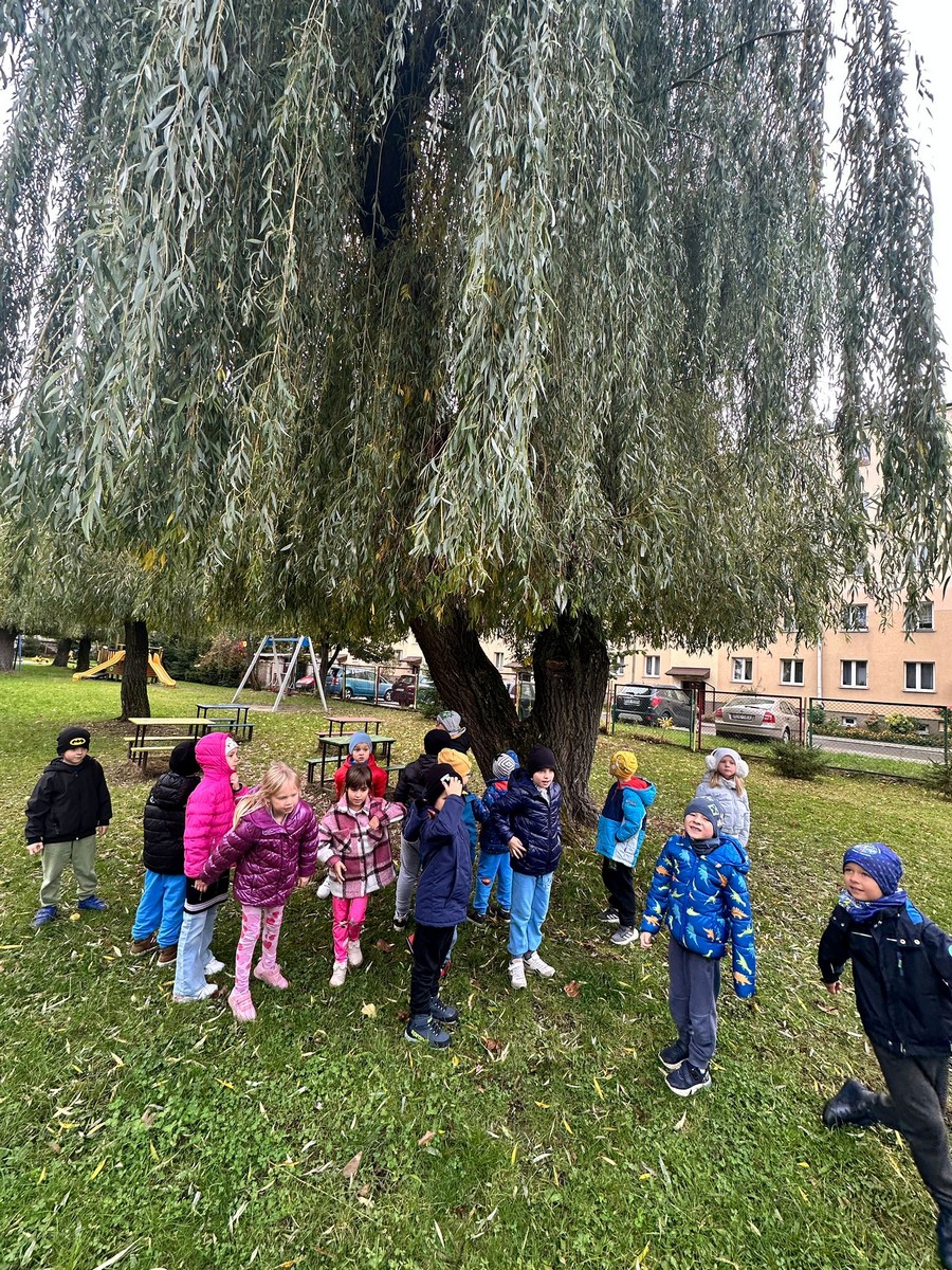 O ważnym znaczeniu drzew dla nas i dla naszego środowiska „Starszaki” już doskonale wiedzą. Wiedzą też o różnorodności gatunków drzew jakie występują się na ścieżce edukacyjnej „Drzewa w naszym ogrodzie”, znają ich wygląd i nazwy. Lecz ich wygląd zmienia się o różnych porach roku, dlatego też Sześciolatki postanowiły prowadzić obserwację drzew o każdej porze roku. Obserwacja ta pomoże dzieciom zrozumieć, że drzewa przechodzą cykliczne zmiany, dostosowując swoje procesy życiowe do warunków atmosferycznych i dostępności zasobów. Przedszkolaki odkryją, że wygląd drzew pomaga nam rozpoznać porę roku. To będzie ciekawe doświadczenie, które z pewnością zapamiętają na zawsze.