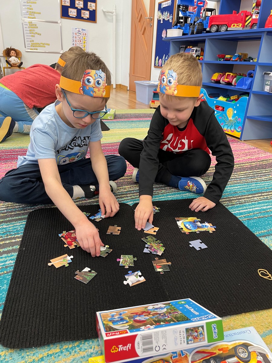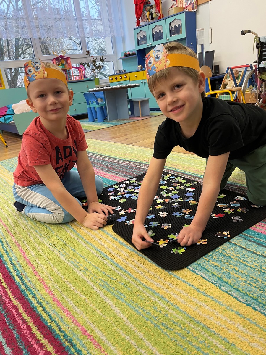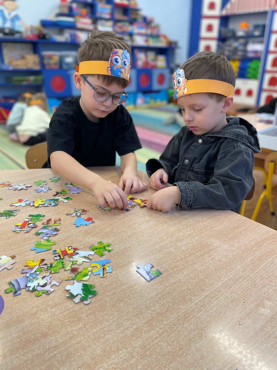 W naszym przedszkolu 29 stycznia odbył się Dzień Puzzli, który dostarczył dzieciom wielu radości i okazji do twórczej zabawy. Przedszkolaki z ogromnym zaangażowaniem układały puzzle o różnym stopniu trudności – od prostych obrazków po bardziej wymagające układanki. Dzieci uczyły się cierpliwości, planowania i czerpały satysfakcję z osiągniętego celu.