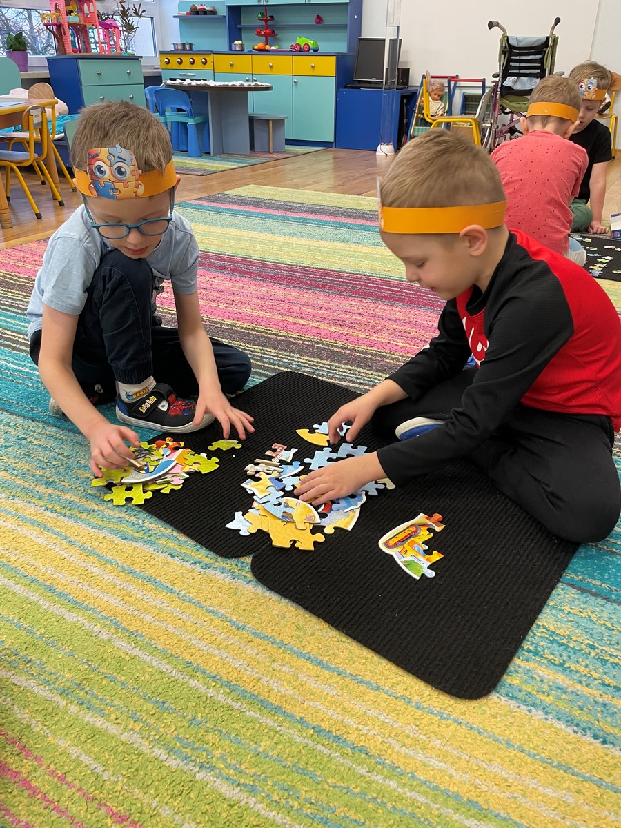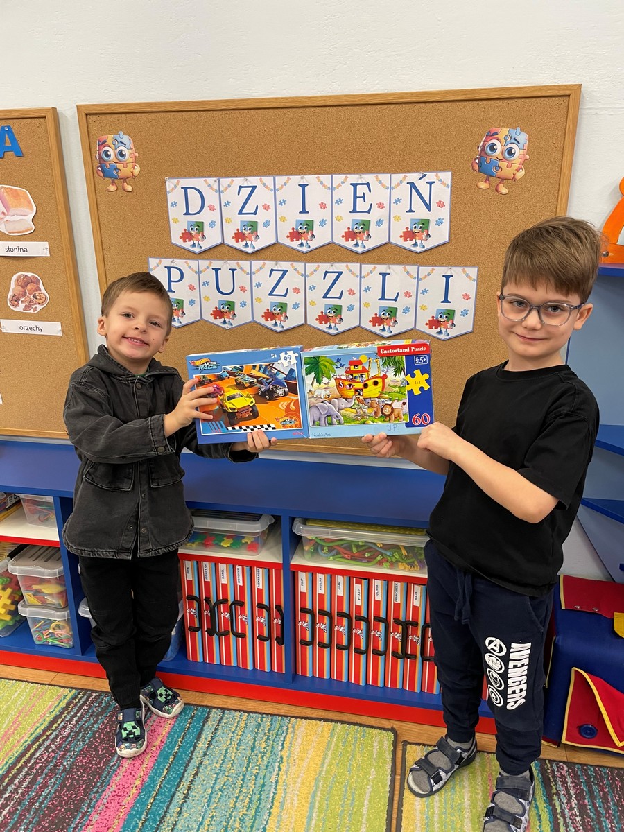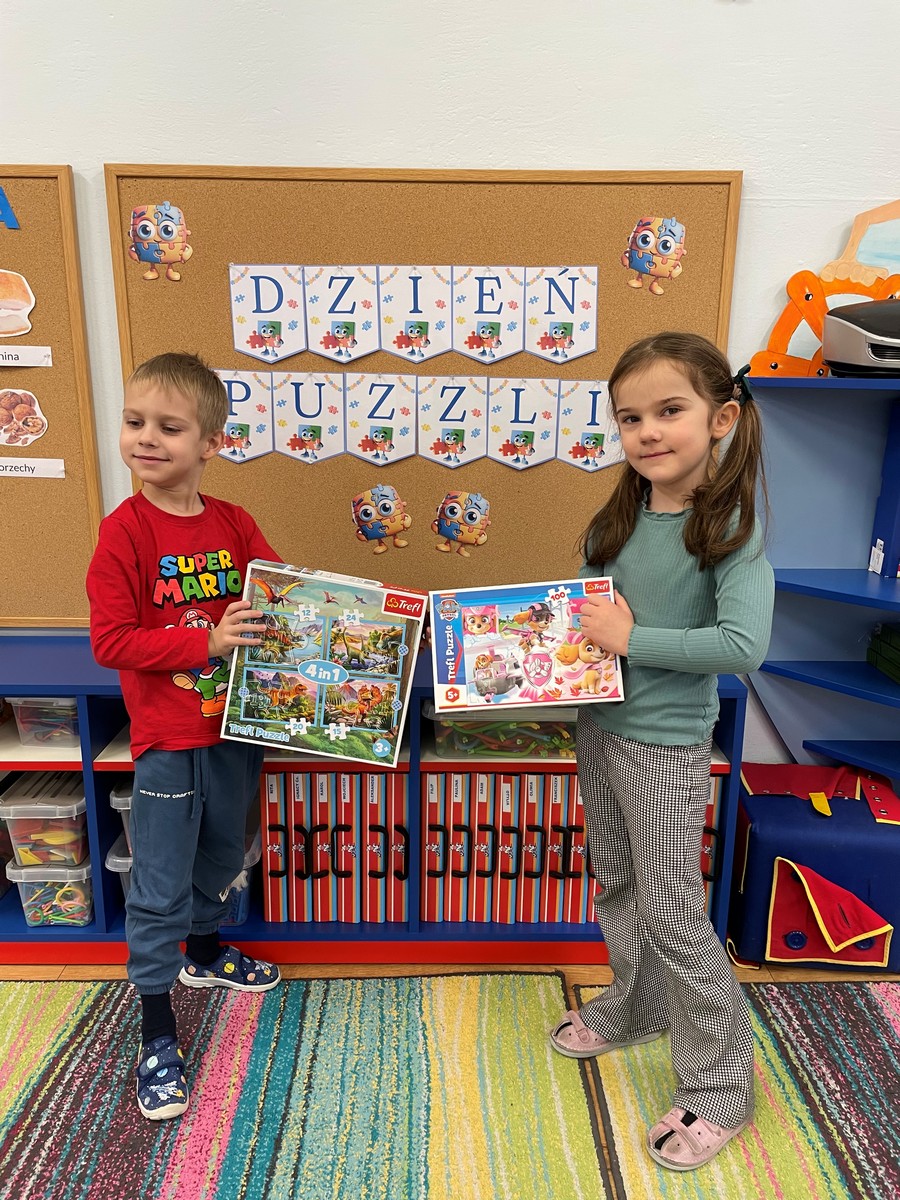 W naszym przedszkolu 29 stycznia odbył się Dzień Puzzli, który dostarczył dzieciom wielu radości i okazji do twórczej zabawy. Przedszkolaki z ogromnym zaangażowaniem układały puzzle o różnym stopniu trudności – od prostych obrazków po bardziej wymagające układanki. Dzieci uczyły się cierpliwości, planowania i czerpały satysfakcję z osiągniętego celu.