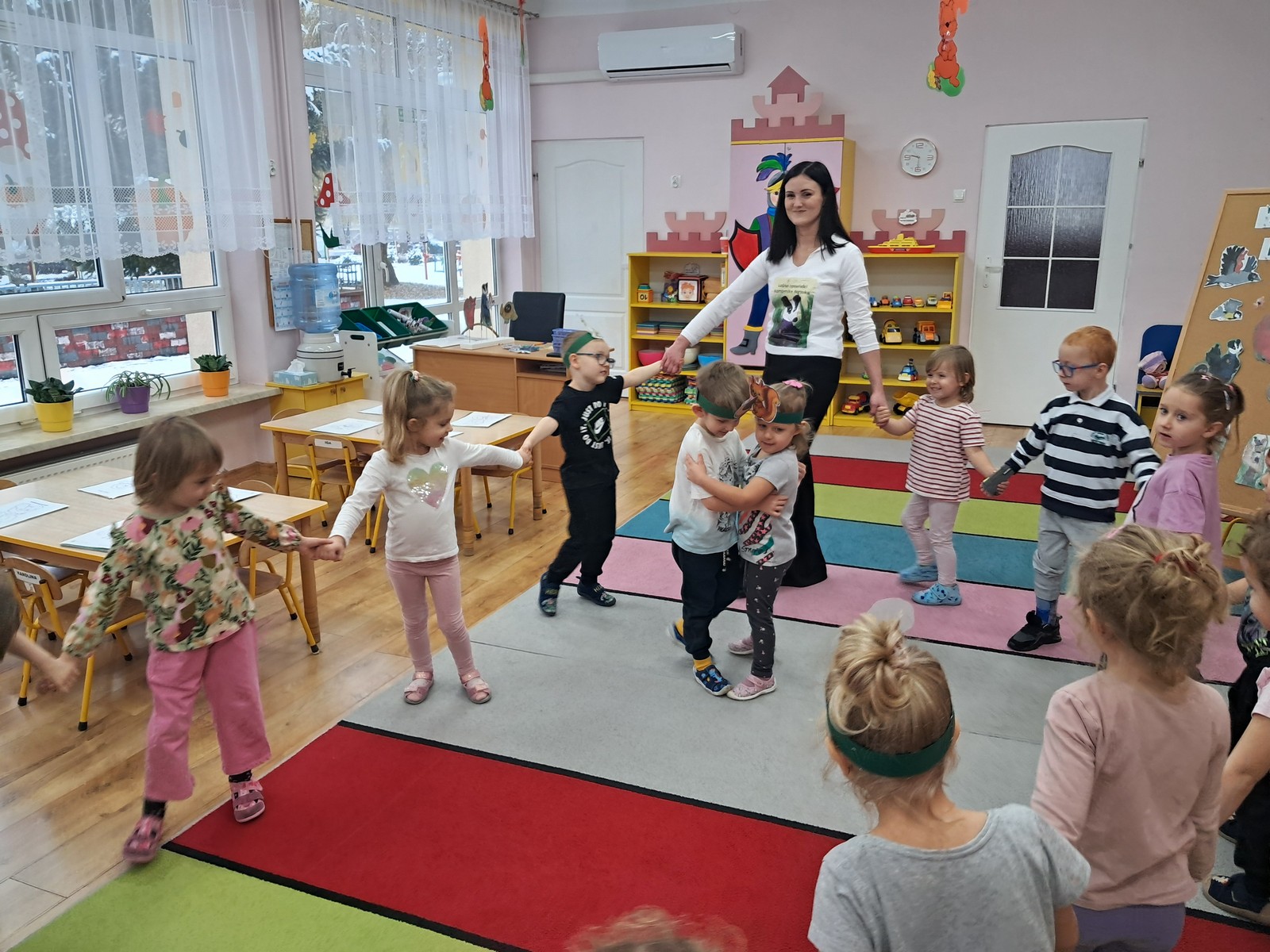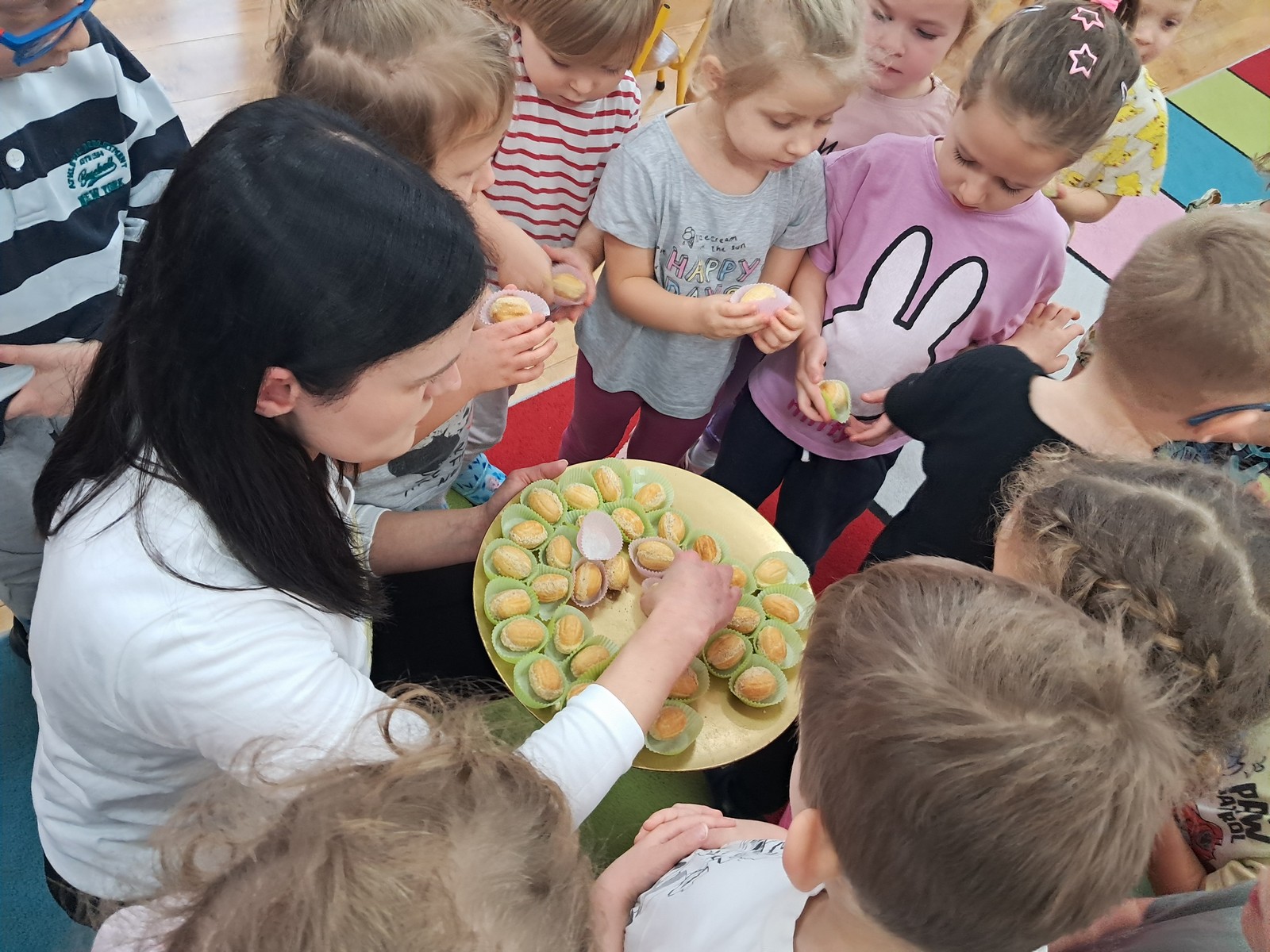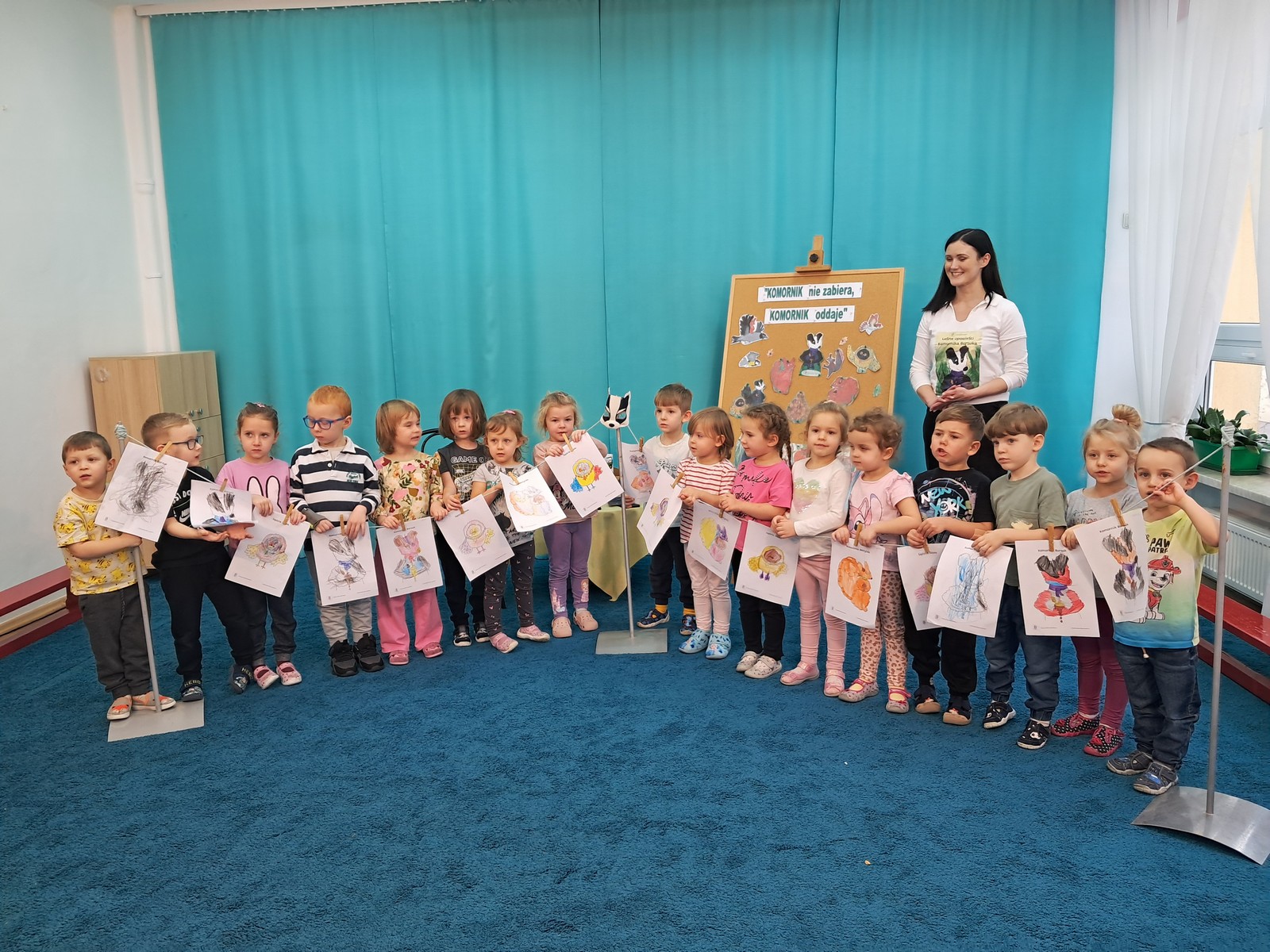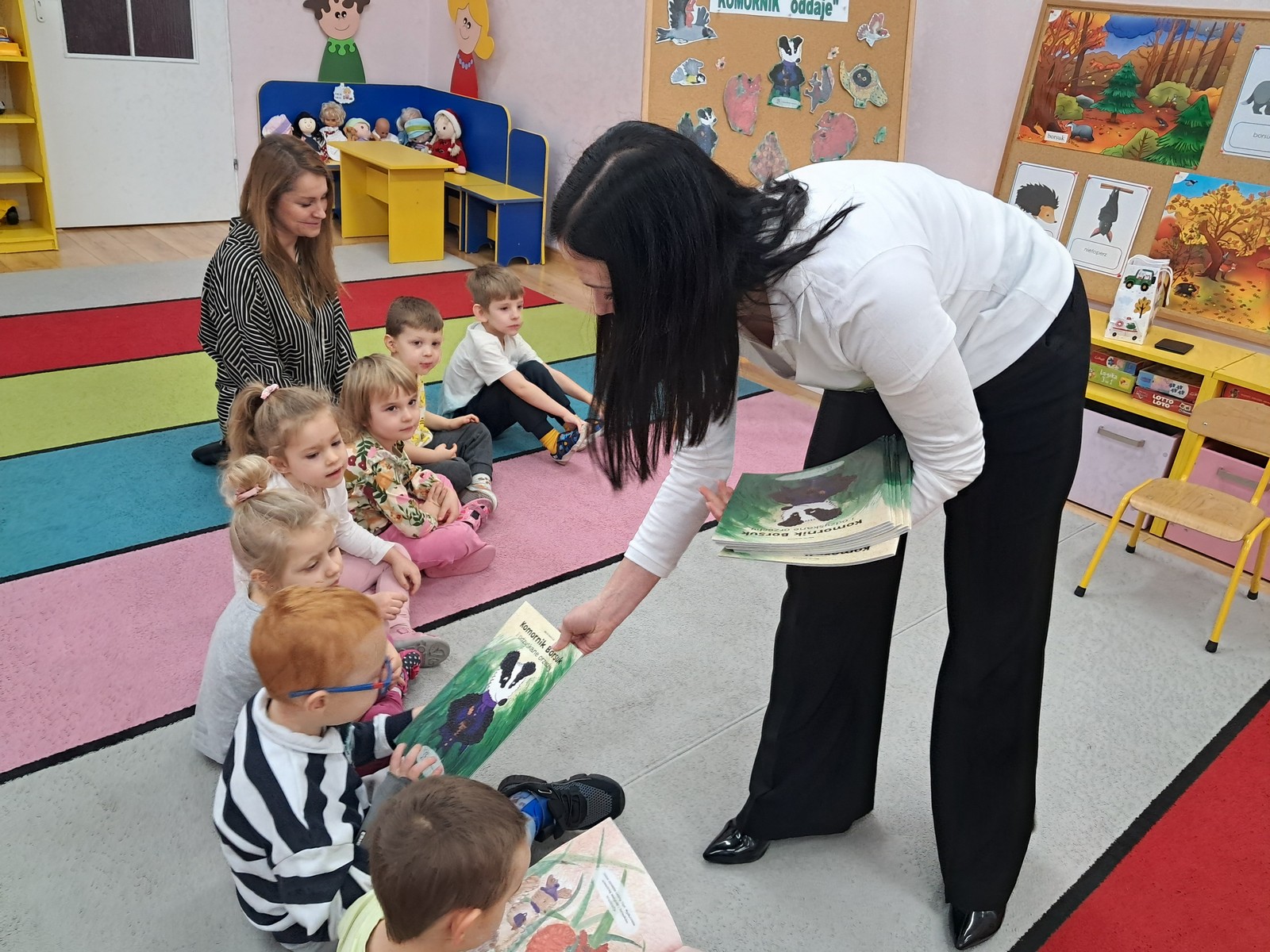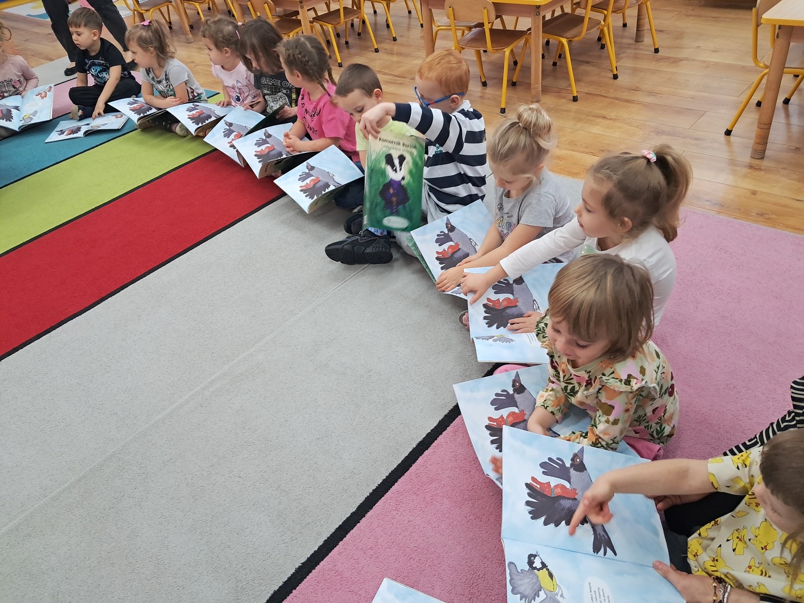 21 listopada 2025r. w naszym przedszkolu odbyło się wyjątkowe spotkanie. Naszym Gościem była Mama Bartusia, która wykonuje zawód komornika sądowego. Pani Kasia podarowała wszystkim dzieciom bajkę pt. ,,Komornik Borsuk i odzyskane orzechy”, a następnie przedstawiła jej treść. W prosty i przystępny sposób wyjaśniła, na czym polega jej praca oraz dlaczego jest ważna. Maluszki zaprosiły miłego Gościa do wspólnej zabawy przy piosence o wiewiórce. Dzieci miały możliwość wyboru kolorowanki z postacią z bajki, którą potem kolorowały. Mama Bartusia poczęstowała Maluszki pysznymi orzeszkami i cukierkami. Spotkanie przebiegło w miłej, serdecznej atmosferze, a dzieci z zainteresowaniem słuchały i aktywnie uczestniczyły w rozmowie i zabawie. Na zakończenie przedszkolaki podziękowały miłemu Gościowi za wizytę, zaśpiewały piosenkę i wręczyły kwiaty. Dzięki takim wizytom nasze przedszkolaki mają okazję poznawać różne zawody oraz uczą się szacunku do różnych profesji.