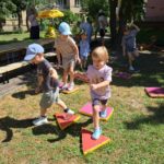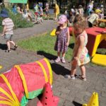 30 czerwca 2025r. był bardzo przyjemnym dniem w przedszkolu. Krasnalki, tak jak wszystkie przedszkolaki, długo czekały na wakacje. Już od rana, przy dźwiękach muzyki, dzieci wraz z Rodzicami, wchodziły do przedszkola tanecznym krokiem. Nadszedł czas wypoczynku. Hasłem tego dnia było: ,,Odpalamy wakacje”. I właśnie ta radość towarzyszyła wszystkim dzieciom i paniom oraz panu Andrzejowi. Dzień był szczególnie słoneczny i wesoły. Przedszkolaki z wszystkich grup bawiły się tak, jak miały na to ochotę. Pokonywały tory przeszkód, budowały ciekawe konstrukcje z dużych klocków, odpoczywały na kocach lub na leżakach, rysowały, jeździły na samochodzikach, bawiły się piłką, wózkami i lalkami. W tym czasie także częstowały się przy wspólnym stole: owocami polanymi czekoladą, specjalnie upieczonym ciastem. Pan Andrzej przygotował dla dzieci pyszny popcorn, a pani Ania intendentka i pani Dyrektor poczęstowała dzieci truskawkowymi lodami. Na zakończenie wspólnego pobytu w ogrodzie przedszkolnym dzieci zjadły obiad na świeżym powietrzu. Dzień był udany i pełen wrażeń. Na pewno stał się miłym początkiem WAKACJI.
