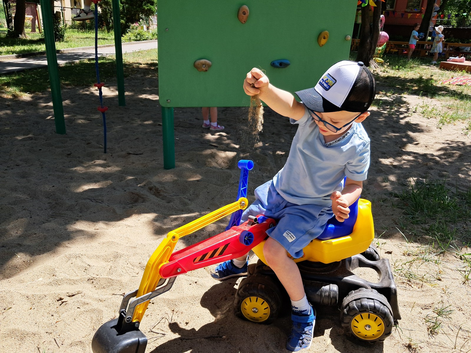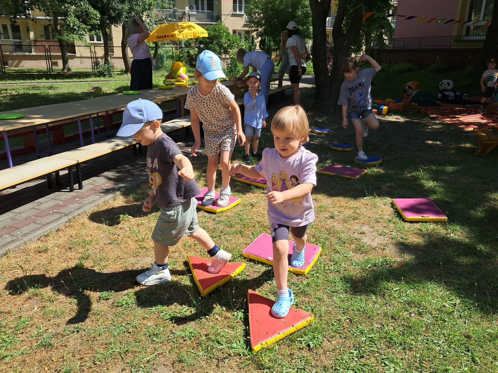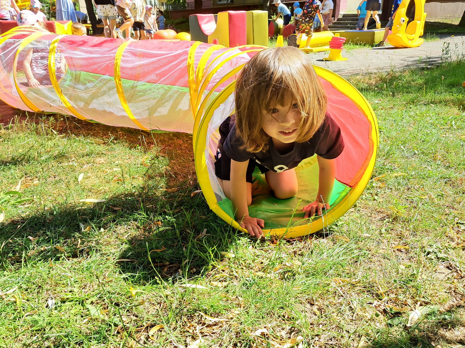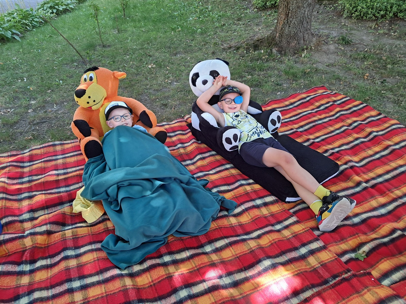 30 czerwca 2025r. był bardzo przyjemnym dniem w przedszkolu. Krasnalki, tak jak wszystkie przedszkolaki, długo czekały na wakacje. Już od rana, przy dźwiękach muzyki, dzieci wraz z Rodzicami, wchodziły do przedszkola tanecznym krokiem. Nadszedł czas wypoczynku. Hasłem tego dnia było: ,,Odpalamy wakacje”. I właśnie ta radość towarzyszyła wszystkim dzieciom i paniom oraz panu Andrzejowi. Dzień był szczególnie słoneczny i wesoły. Przedszkolaki z wszystkich grup bawiły się tak, jak miały na to ochotę. Pokonywały tory przeszkód, budowały ciekawe konstrukcje z dużych klocków, odpoczywały na kocach lub na leżakach, rysowały, jeździły na samochodzikach, bawiły się piłką, wózkami i lalkami. W tym czasie także częstowały się przy wspólnym stole: owocami polanymi czekoladą, specjalnie upieczonym ciastem. Pan Andrzej przygotował dla dzieci pyszny popcorn, a pani Ania intendentka i pani Dyrektor poczęstowała dzieci truskawkowymi lodami. Na zakończenie wspólnego pobytu w ogrodzie przedszkolnym dzieci zjadły obiad na świeżym powietrzu. Dzień był udany i pełen wrażeń. Na pewno stał się miłym początkiem WAKACJI.