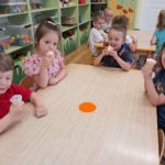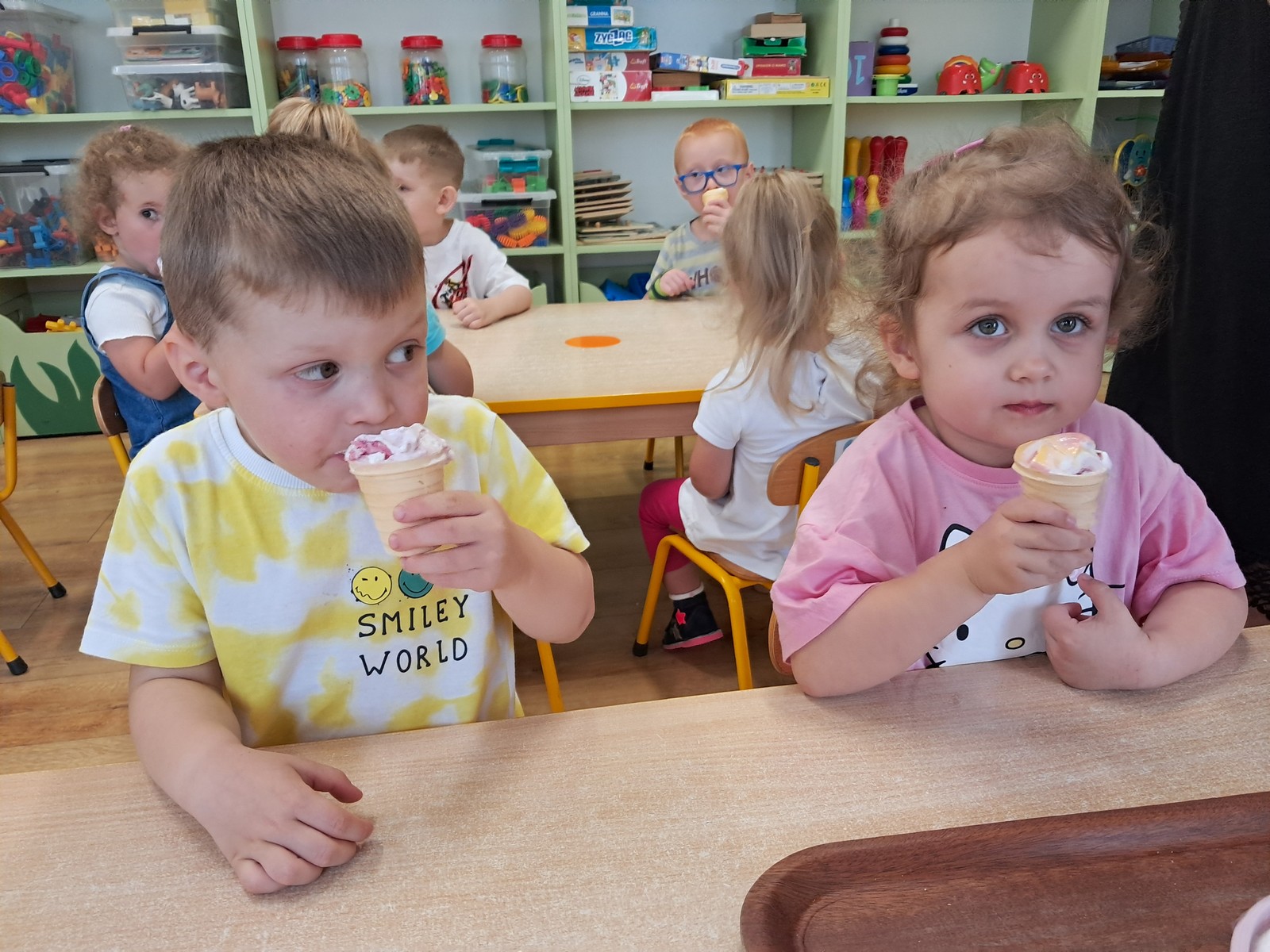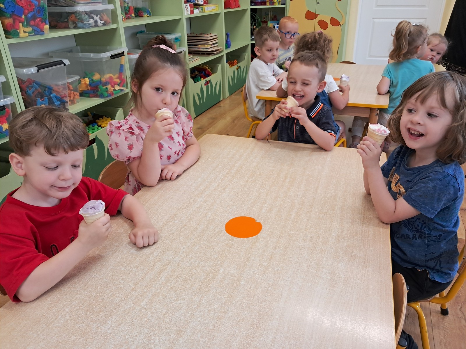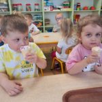 27 czerwca 2025r. Krasnalki rozmawiały o tym , jakie lody szczególnie lubią. Dzieci chętnie poczęstowały się lodami owocowo – śmietankowymi. Lody zostały zakupione z nadwyżki finansowej z ostatniej wycieczki.