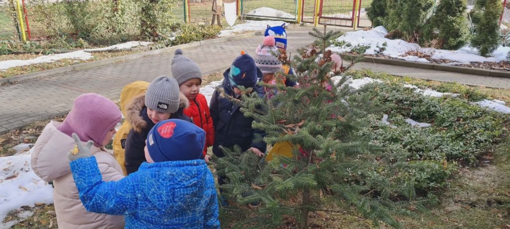 6 lutego Krasnalki przeszły ścieżką edukacyjną ,,Drzewa w Naszym Ogrodzie”. Podczas spaceru dzieci przyglądały się liściastym drzewom, które zrzuciły liście, oraz iglastym, które chronią swoje igły woskiem podczas zimy. Dzięki tej lekcji na świeżym powietrzu Krasnalki mogły w praktyczny sposób poznać zmiany zachodzące w przyrodzie w czasie zimy.