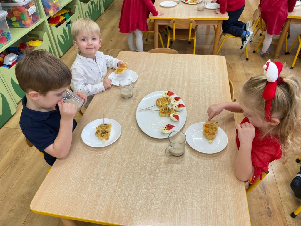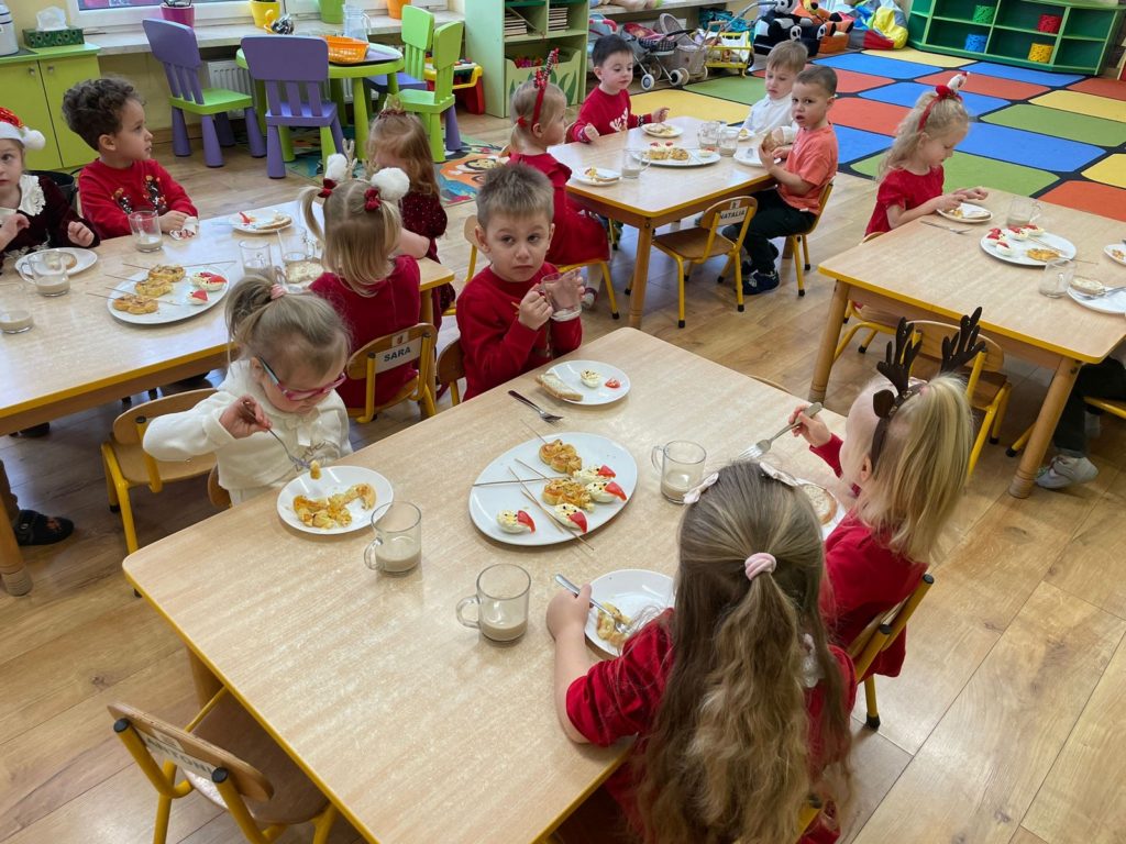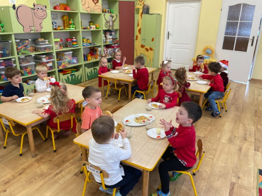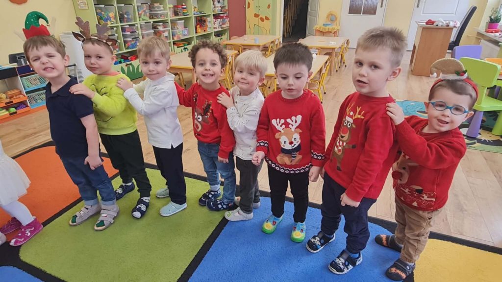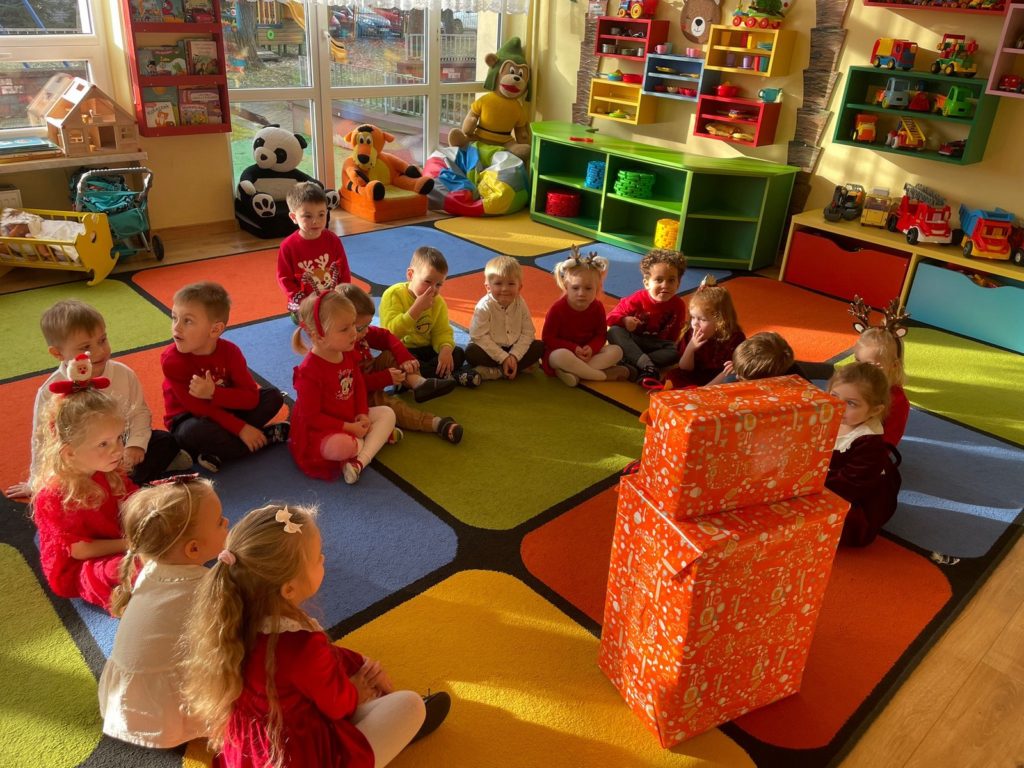 5 grudnia w naszym przedszkolu panowała wyjątkowa, radosna atmosfera. Zgodnie z tradycją obchodziliśmy Mikołajki. Uroczystość rozpoczęła się przedstawieniem ,,W oczekiwaniu na Świętego Mikołaja” w wykonaniu Naszych Pań z Przedszkola. Z dużym zainteresowaniem obejrzały je wszystkie przedszkolaki – dowiedziały się historii życia Świętego Mikołaja. Następnie dzieci zachęcone przez aniołki zaśpiewały piosenkę, wzywając Świętego Mikołaja Biskupa. Wkrótce po tym długo wyczekiwany gość pojawił się w przedszkolu, wywołując ogromną radość i uśmiechy na twarzach dzieci. Święty Mikołaj obdarował wszystkie dzieci pięknymi prezentami. Spotkanie z Mikołajem było pięknym i niezapomnianym przeżyciem.