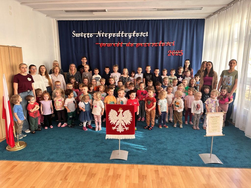 Czterolatki z naszego przedszkola z dumą wzięły udział w ogólnopolskiej akcji „Szkoła do hymnu”. Punktualnie o godzinie 11:11, 7 listopada 2025r., Maluszki wspólnie z dziećmi z innych grup odśpiewały „Mazurek Dąbrowskiego”, pokazując, że patriotyzm można pielęgnować już od najmłodszych lat. Wydarzenie było pełne radości, wzruszeń i poczucia wspólnoty narodowej, a dzieci z ogromnym zaangażowaniem zaprezentowały swoje umiejętności.