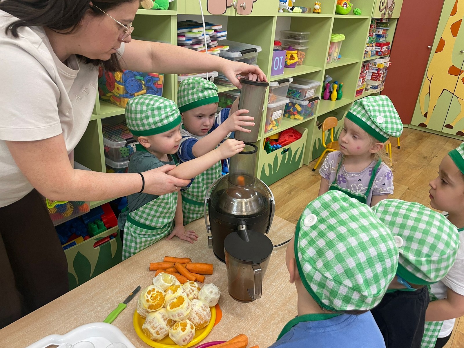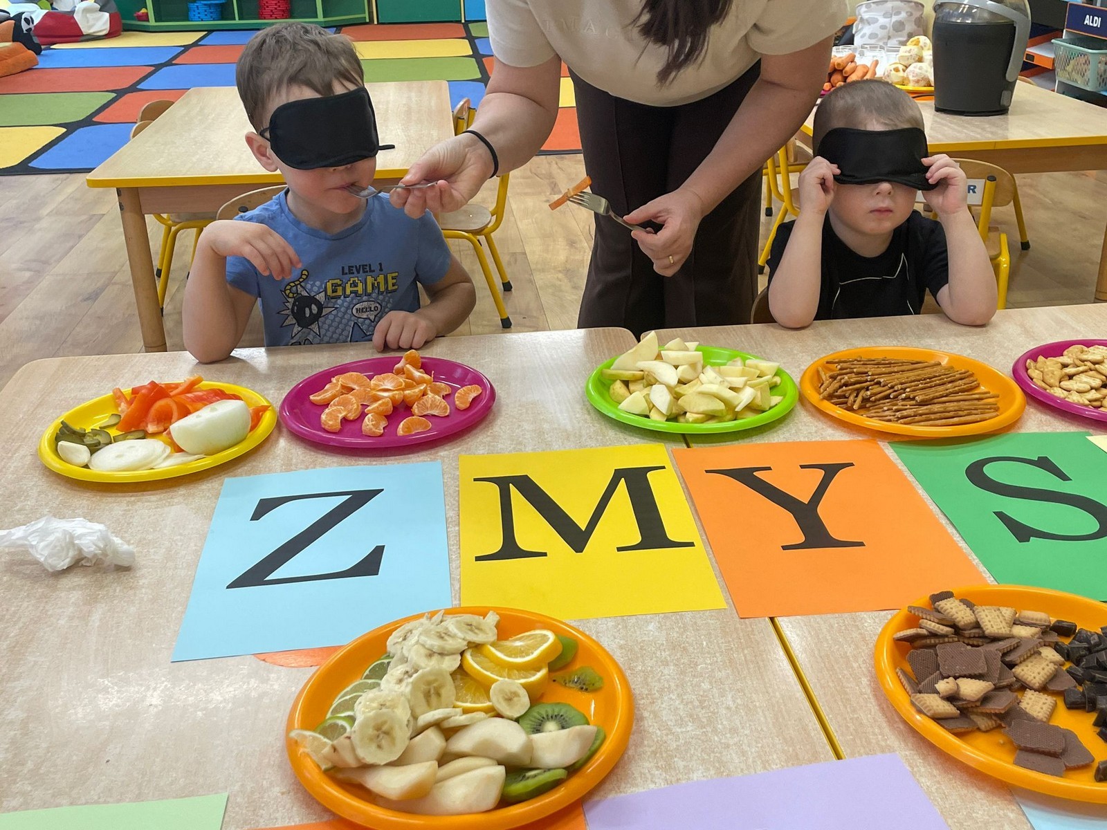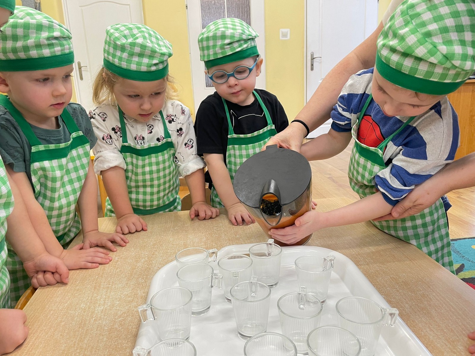 „Pięć zmysłów mamy, więc je odkrywamy to innowacja pedagogiczna, która pozwala naszym Krasnalkom poznawać świat poprzez aktywne doświadczanie wszystkimi zmysłami. 30 stycznia skupiliśmy się na zmyśle smaku, który pozwala dzieciom odkrywać różnorodność potraw i uczy świadomego poznawania tego, co jemy. Podczas zajęć Krasnalki próbowały różnych smaków: słodkiego, słonego, kwaśnego i gorzkiego, ucząc się je rozpoznawać i nazywać. Dodatkową atrakcją było wspólne przygotowanie soku – dzieci samodzielnie wybierały owoce i warzywa, poznawały ich smak i zapach, a następnie z ogromną radością degustowały własnoręcznie wykonany napój. Było mnóstwo emocji, ciekawości i radości z odkrywania nowych doznań smakowych.