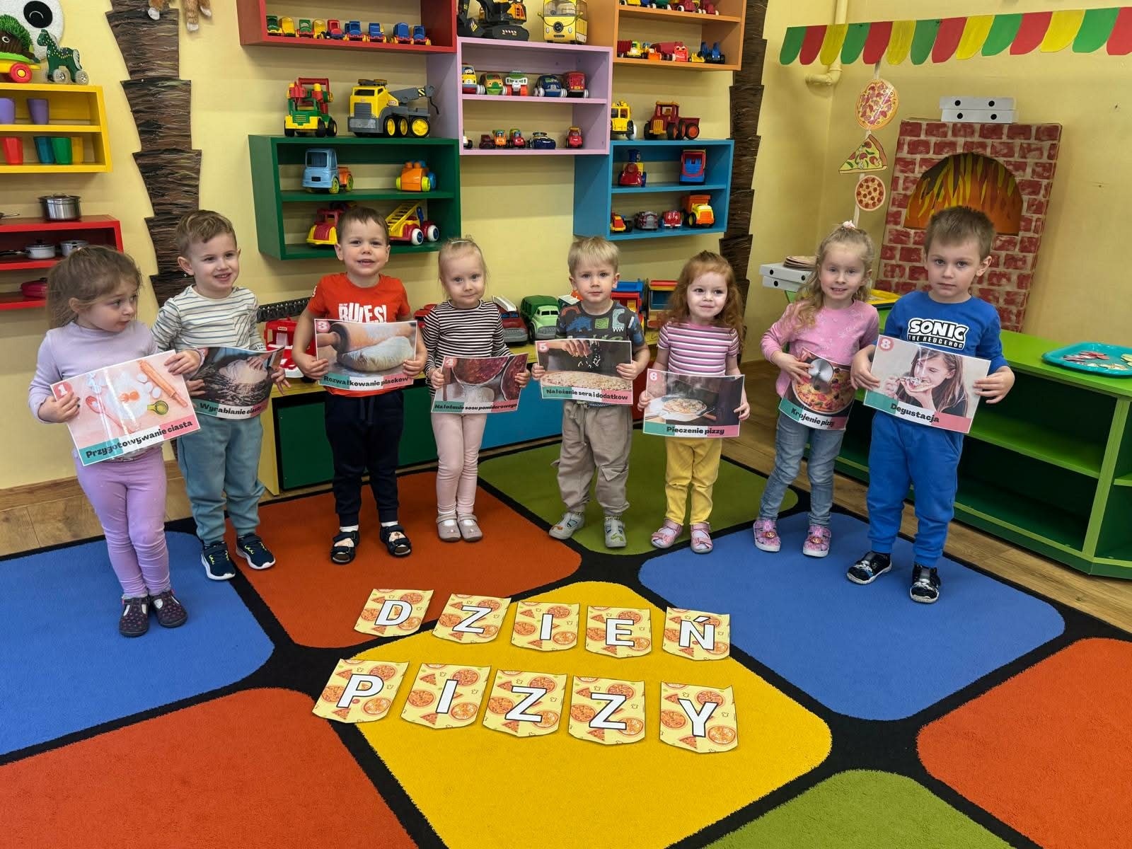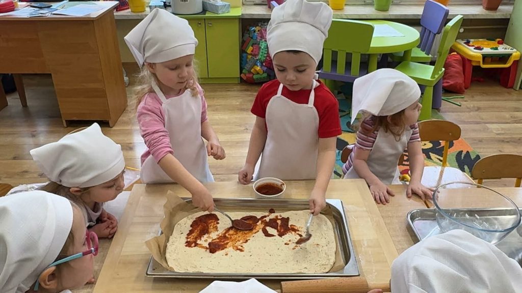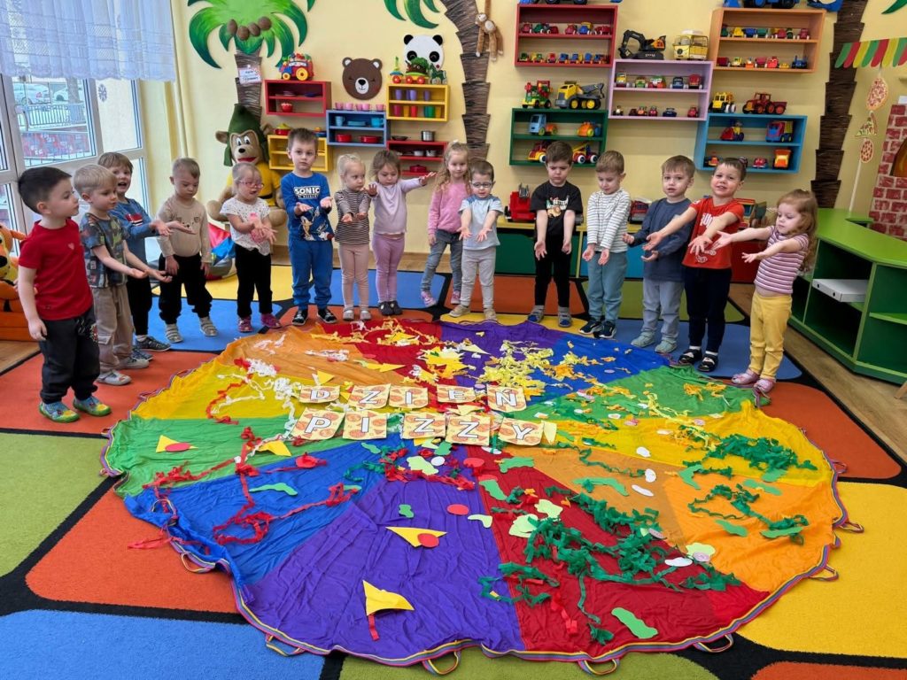 Dnia 9 lutego w naszej grupie obchodzony był „Dzień Pizzy”. Podczas zajęć dzieci poznały krótką historię pizzy, dowiedziały się, z jakiego kraju pochodzi oraz poznały składniki, które są niezbędne do jej przygotowania. Nie zabrakło również zabawy w „dostawcę pizzy” oraz zabaw z chustą animacyjną, która swoim kształtem przypomina tą włoską potrawę. Później nastąpiła część kulinarna – wykonanie prawdziwej pizzy przez nasze Krasnalki. Najbardziej wyczekiwanym punktem tego dnia było skosztowanie pizzy, która okazała się przepyszna i została zjedzona do ostatniego kawałka.