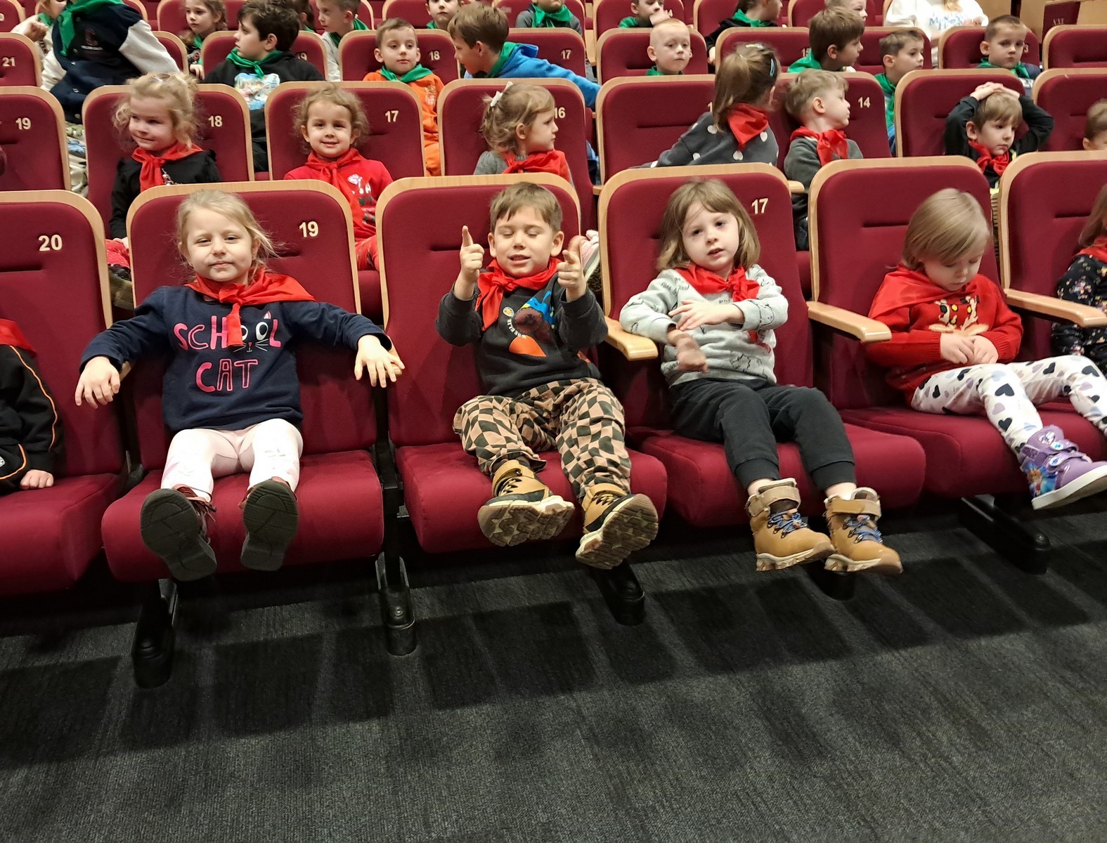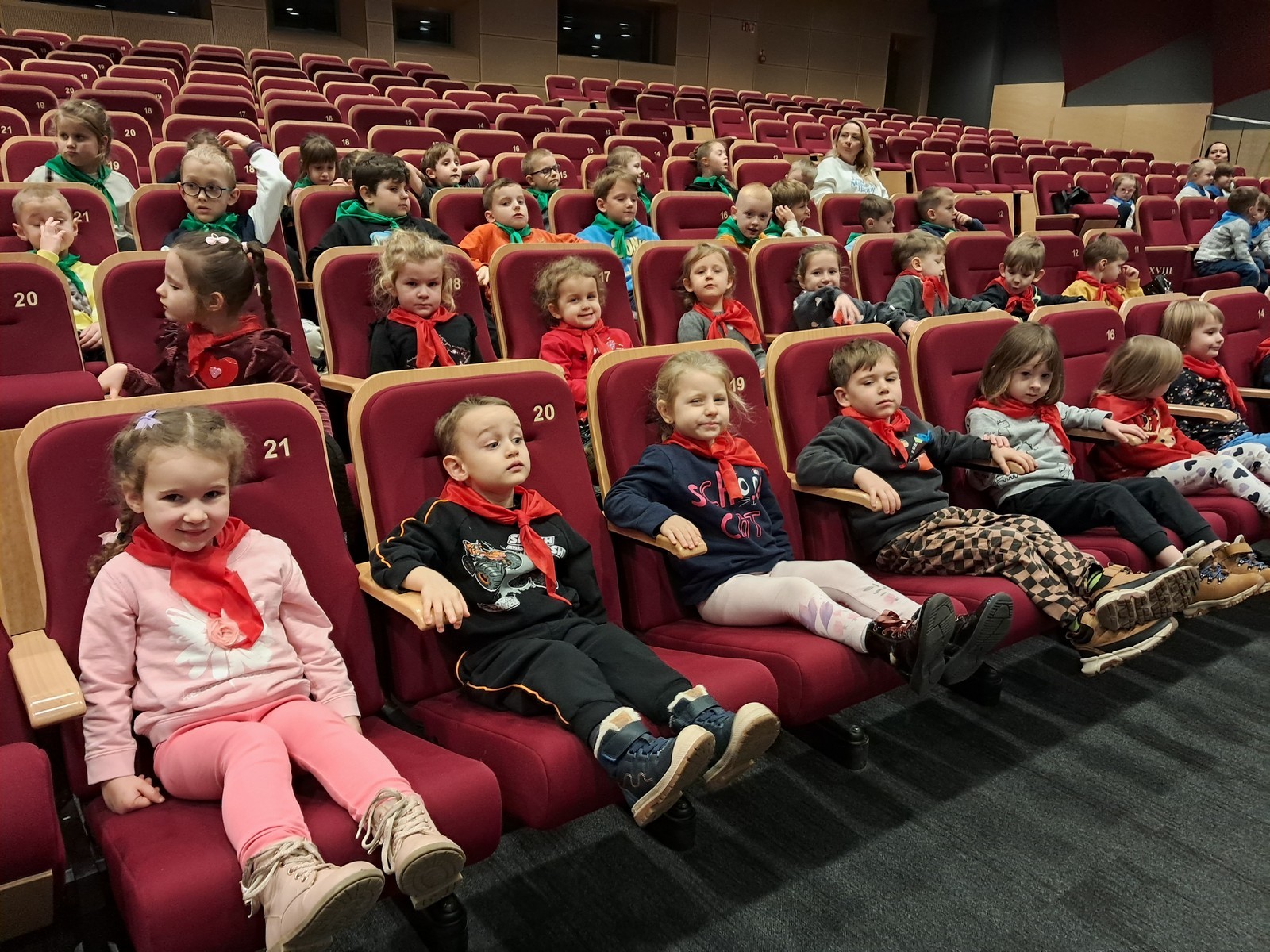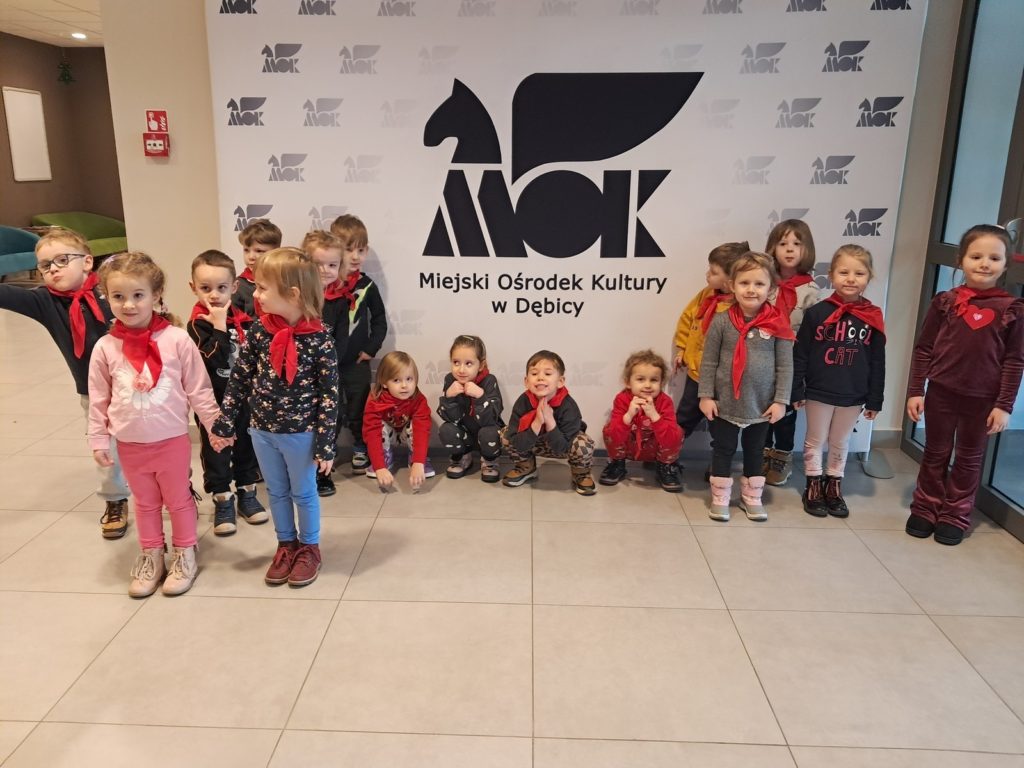 16 grudnia 2025r. nasze Maluszki wraz ze Średniakami i Starszakami udały się na wycieczkę do Domu Kultury ,,MORS” na przedstawienie pt. ,,Przygody Baltazara i Wawelskiego Smoka” w wykonaniu aktorów z Narodowego Teatru Edukacji im. Adama Mickiewicza z Wrocławia. Przedstawienie pełne barwnych postaci, muzyki i humoru szybko zdobyło uwagę najmłodszych widzów. Dzieci z zainteresowaniem śledziły losy bohatera, reagując żywiołowo na kolejne sceny. Wyjazd do teatru był dla przedszkolaków nie tylko atrakcyjną formą spędzenia czasu, ale również wartościowym doświadczeniem rozwijającym wyobraźnię, wrażliwość i umiejętność skupienia. To spotkanie z teatrem z pewnością pozostawiło wiele pozytywnych wrażeń.