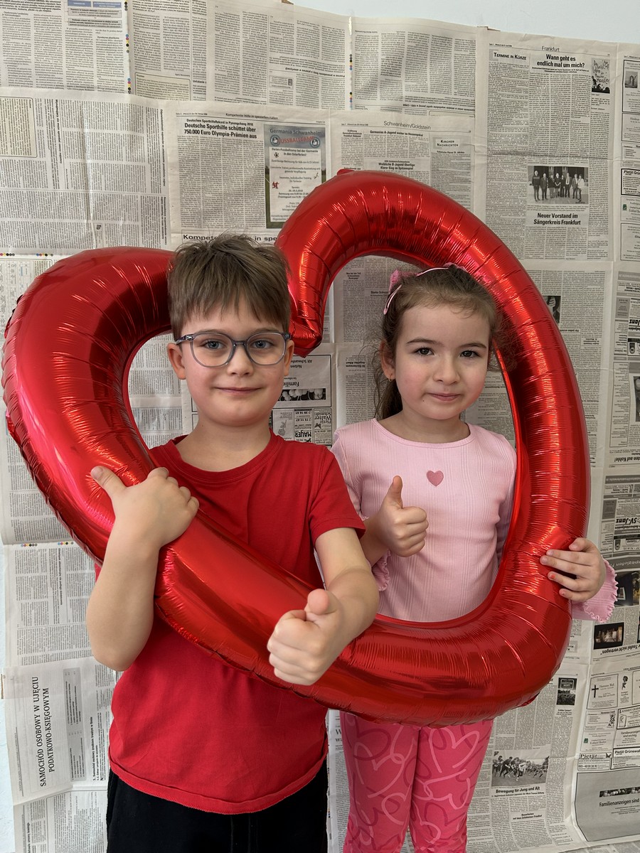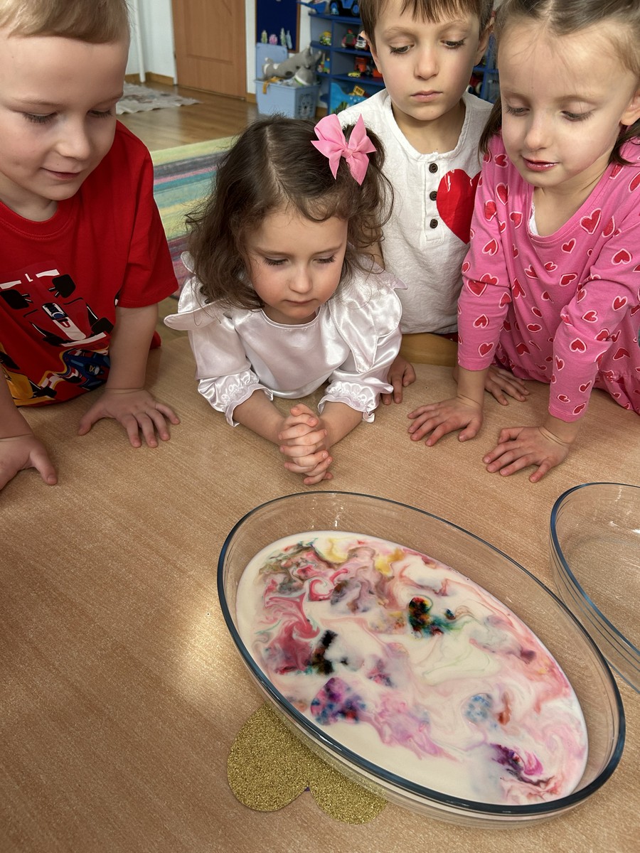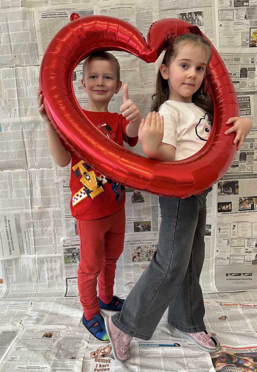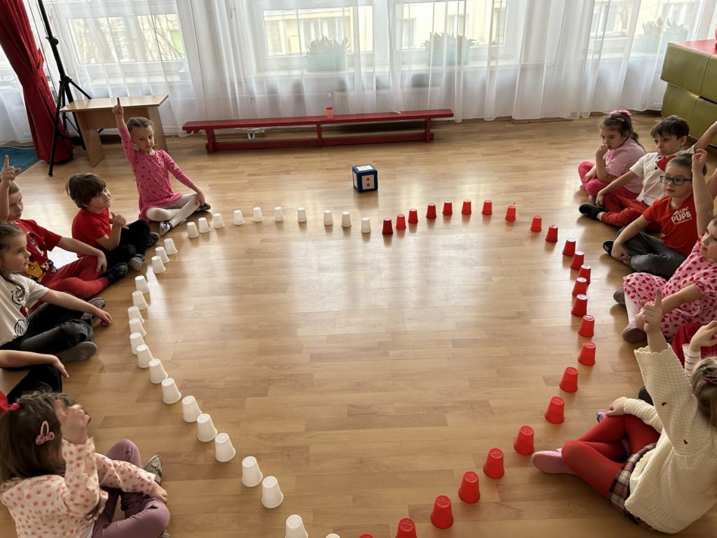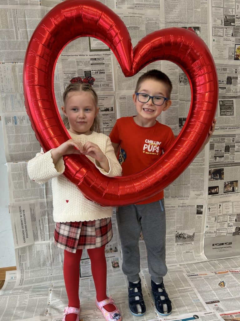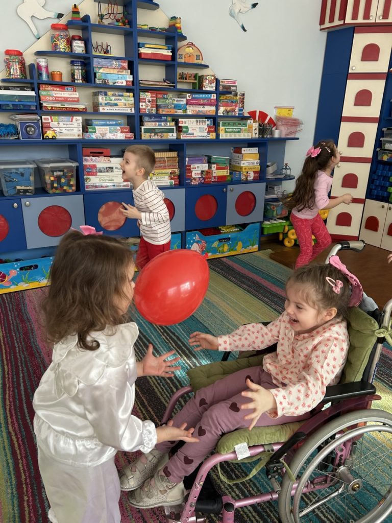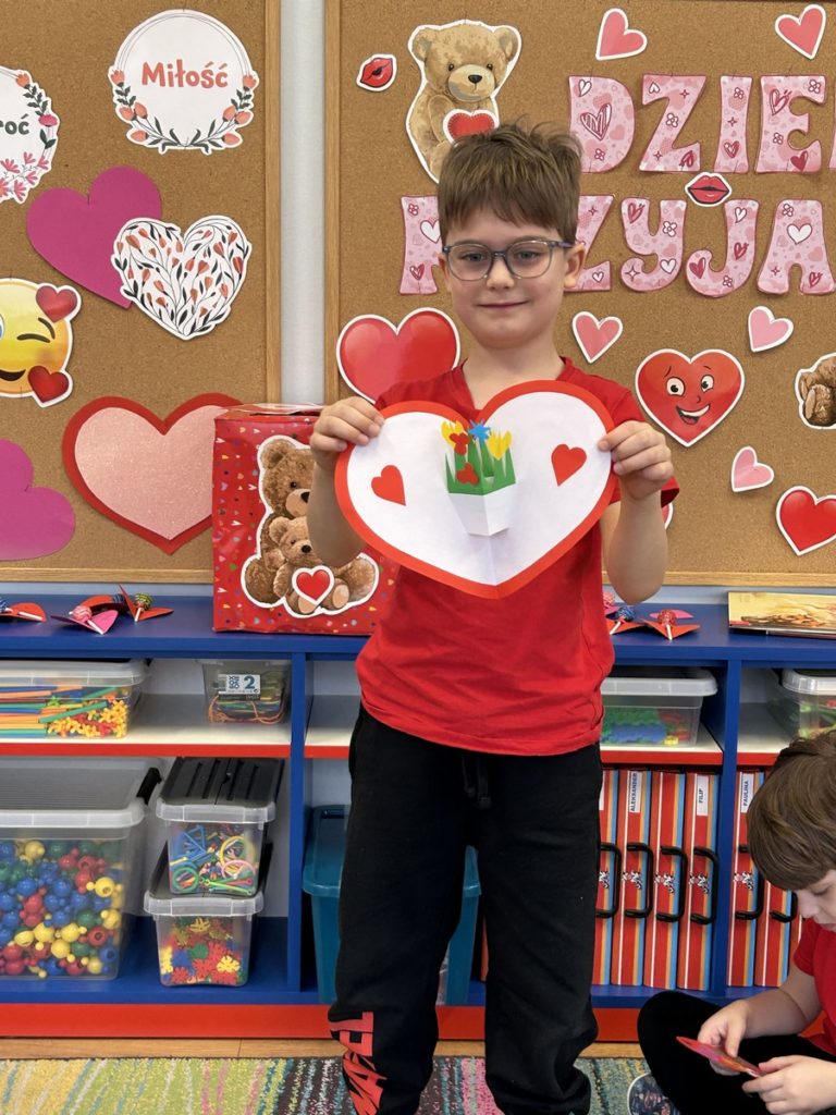 13 lutego świętowaliśmy Dzień Przyjaźni – dzień pełen uśmiechu i życzliwości! Dzieci ubrane na czerwono i różowo z dumą wypełniały Skrzynkę Przyjaźni domowymi laurkami, by później z radością wylosować dla siebie niespodziankę od kolegi lub koleżanki. W rymie radosnych, walentynkowych piosenek o przyjaźni dzieci wirowały  w tańcu z balonami i z wielkim zapałem brały udział w zabawnych konkurencjach zręcznościowych. Z zasłoniętymi szarfą oczami rozpoznawały swoich przyjaciół dotykiem. Prawdziwym hitem była zabawa z tekturowymi wachlarzami, dzięki którym dzieci sprawiły, że urocze balony z nóżkami radośnie podskakiwały. Brały udział w ciekawej konkurencji z kostką – „Serce z kubków”. Wykazały się kreatywnością, malując czerwoną farbą serca na ściance z gazet. Przedszkolaki zamieniły się w małych odkrywców, wykonując doświadczenie „Wulkan Przyjaźni” oraz tworząc na talerzu magiczne, tęczowe serca. Nie zabrakło też wyzwań dla małych rączek- dzieci z ogromnym skupieniem badały strukturę czerwonej galaretki, by odnaleźć w niej tajemnicze, ukryte guziki. To był dzień pełen magii, bliskości oraz wspaniałej, wspólnej zabawy!