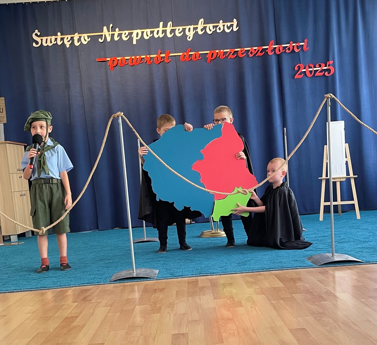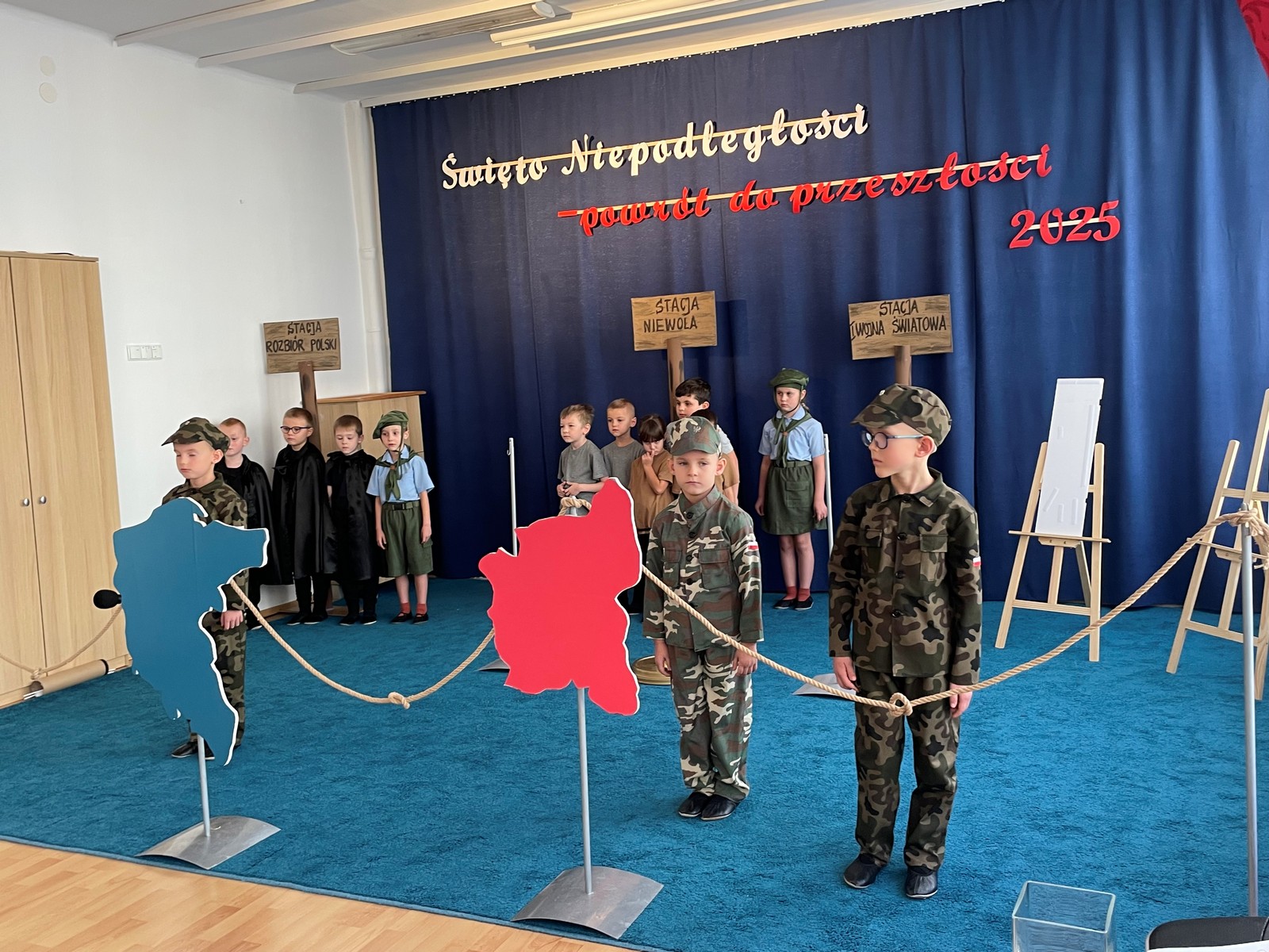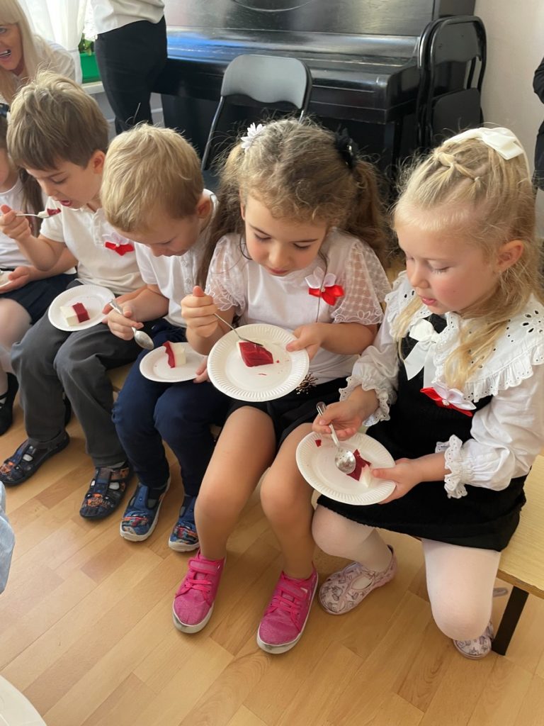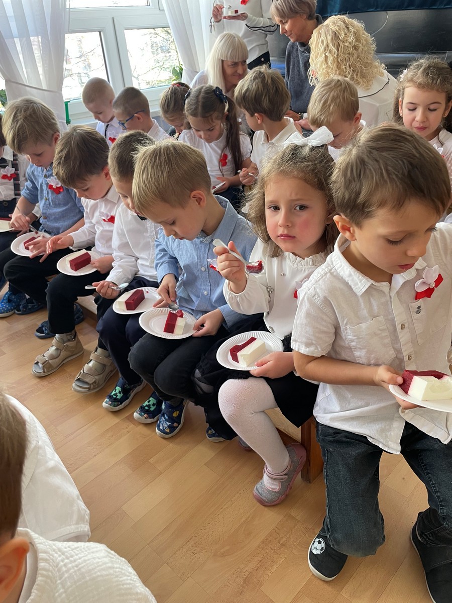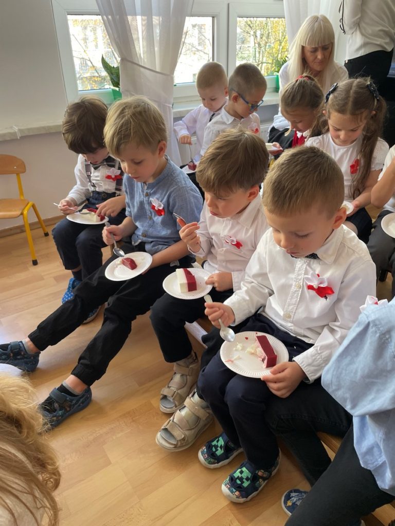 6 listopada w naszym przedszkolu odbyła się niezwykła akademia z okazji Narodowego Święta Niepodległości, przygotowana przez dzieci z najstarszej grupy. W czasie występu Dwójkowe Zuchy zaprezentowały pełną emocji i refleksji lekcję patriotyzmu pt. „Powrót do przeszłości”. Przedszkolaki przedstawiły dzieje naszego kraju. Całość uświetniły pieśni patriotyczne oraz wspólne, uroczyste odśpiewanie Hymnu Polski. Uroczystość zakończyła się słodkim akcentem – okazałym, biało-czerwonym tortem przygotowanym przez nasze utalentowane Panie Kucharki.