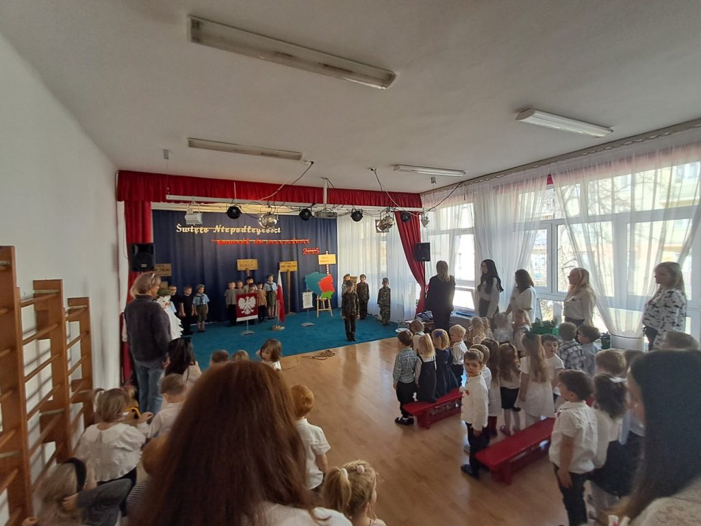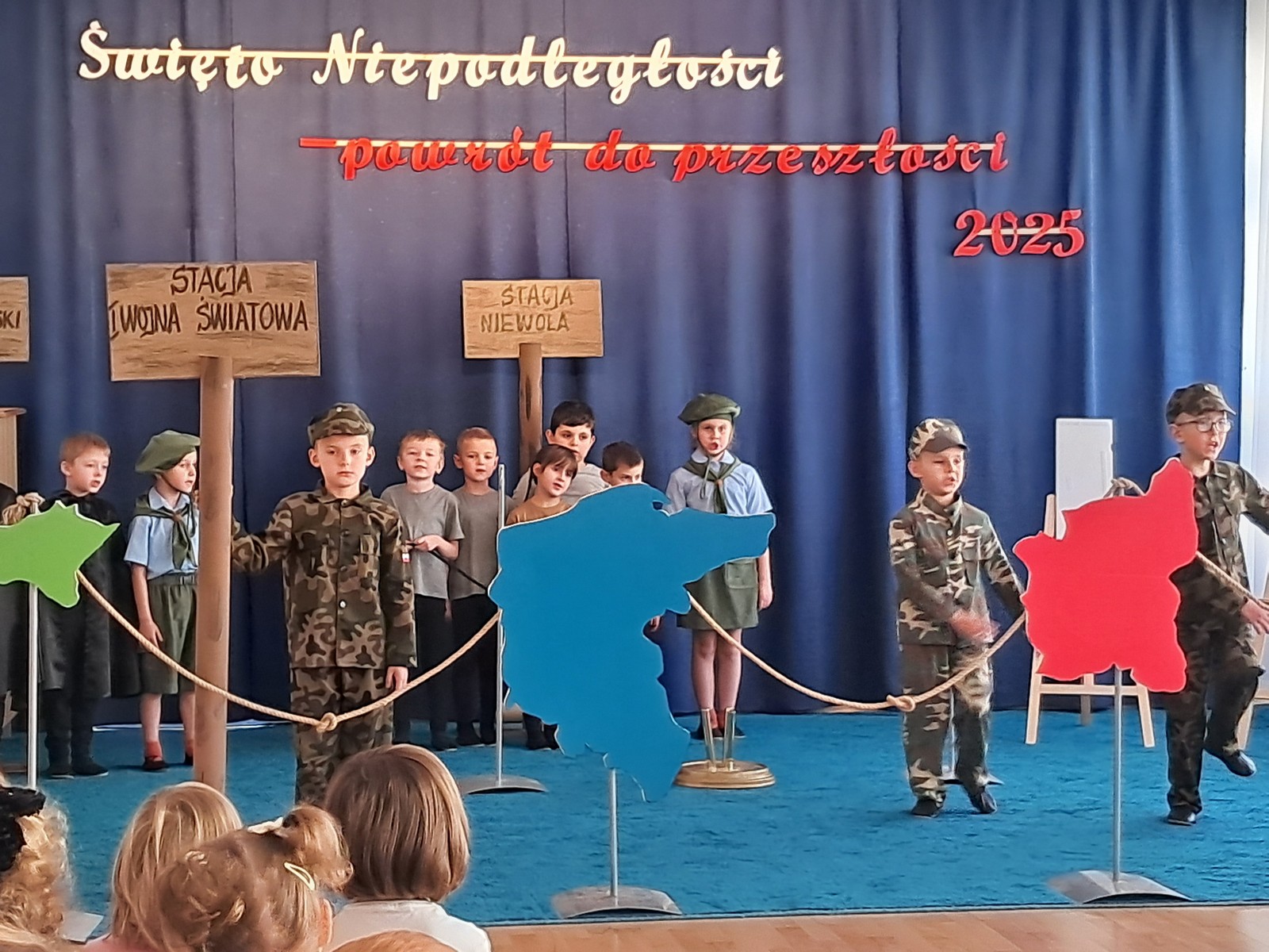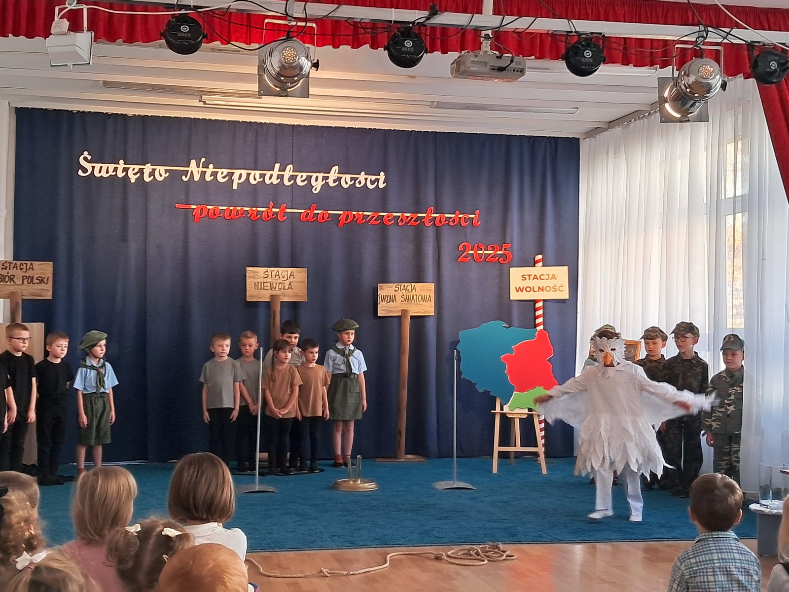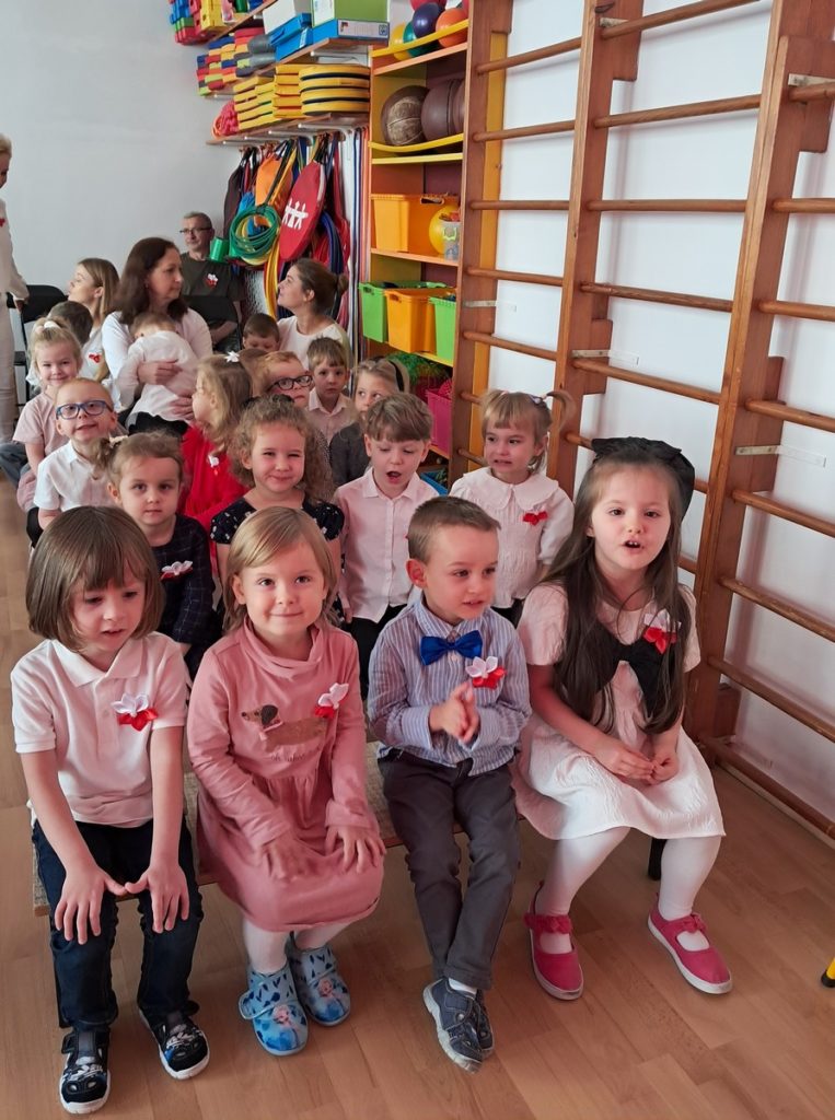 6 listopada 2025r. w naszym przedszkolu odbyła się wyjątkowa Uroczystość z okazji Narodowego Święta Niepodległości. W trakcie pięknego przedstawienia, Dwójkowe Zuchy zaprezentowały wzruszającą lekcję patriotyzmu pod tytułem „Powrót do przeszłości”. Najstarsze przedszkolaki wystąpiły w krótkich scenkach, które ukazywały historię Polski – od rozbiorów po odzyskanie niepodległości. W programie znalazły się także patriotyczne pieśni oraz wspólne odśpiewanie Hymnu Polski w postawie na baczność. Maluszki, jak i przedszkolaki z innych grup, były bardzo zaciekawione występem starszych kolegów i koleżanek. Piękne przedstawienie zostało nagrodzone gromkimi brawami. Uroczystość zakończyła się wspólnym, słodkim poczęstunkiem – przepysznym tortem w biało-czerwonych barwach, przygotowanym przez nasze Panie Kucharki.