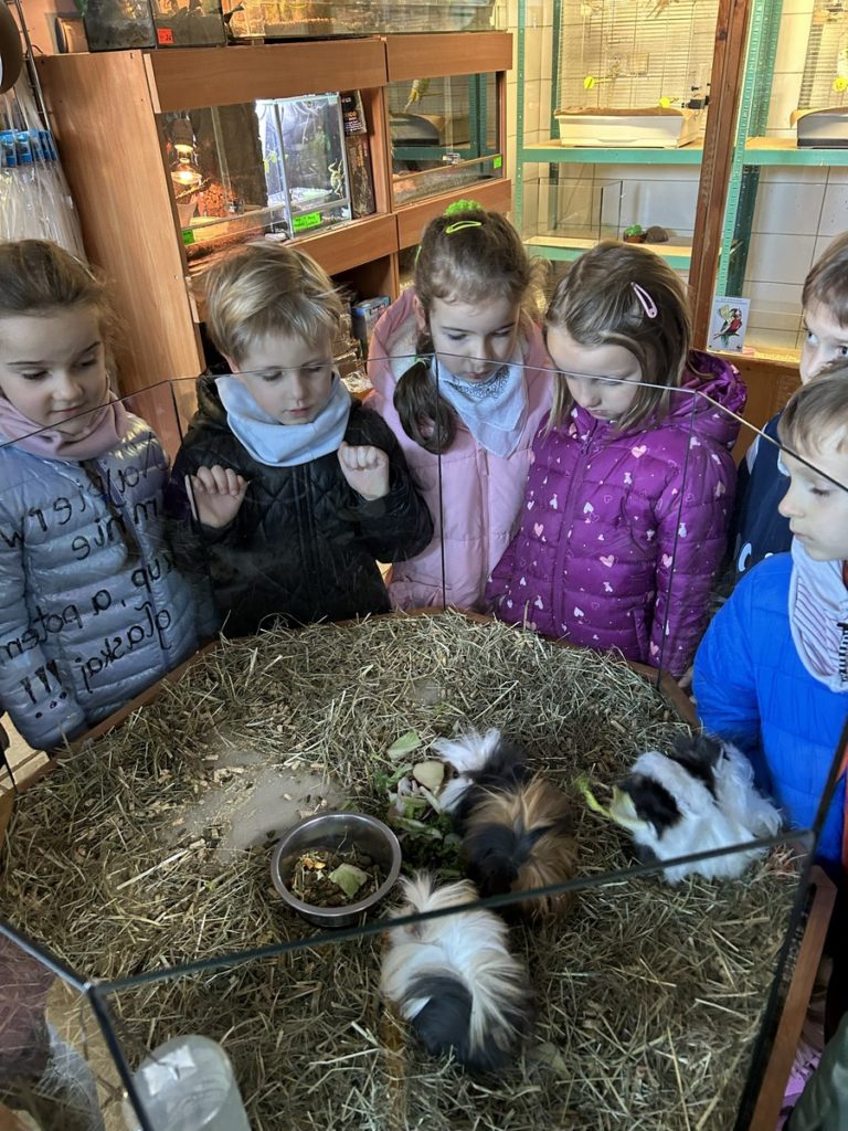 31 października Średniaki podczas wizyty w sklepie zoologicznym „Delfin” w Dębicy miały okazję bezpośrednio obserwować różne gatunki zwierząt. Poznały ich zwyczaje, tryb życia oraz dowiedziały się, czym się odżywiają. Dzieci zrozumiały, że posiadanie zwierzątka to nie tylko przyjemność, ale przede wszystkim duża odpowiedzialność i obowiązek dbania o nie. Wycieczka była dla przedszkolaków wspaniałą przygodą i cenną lekcją szacunku do świata przyrody.