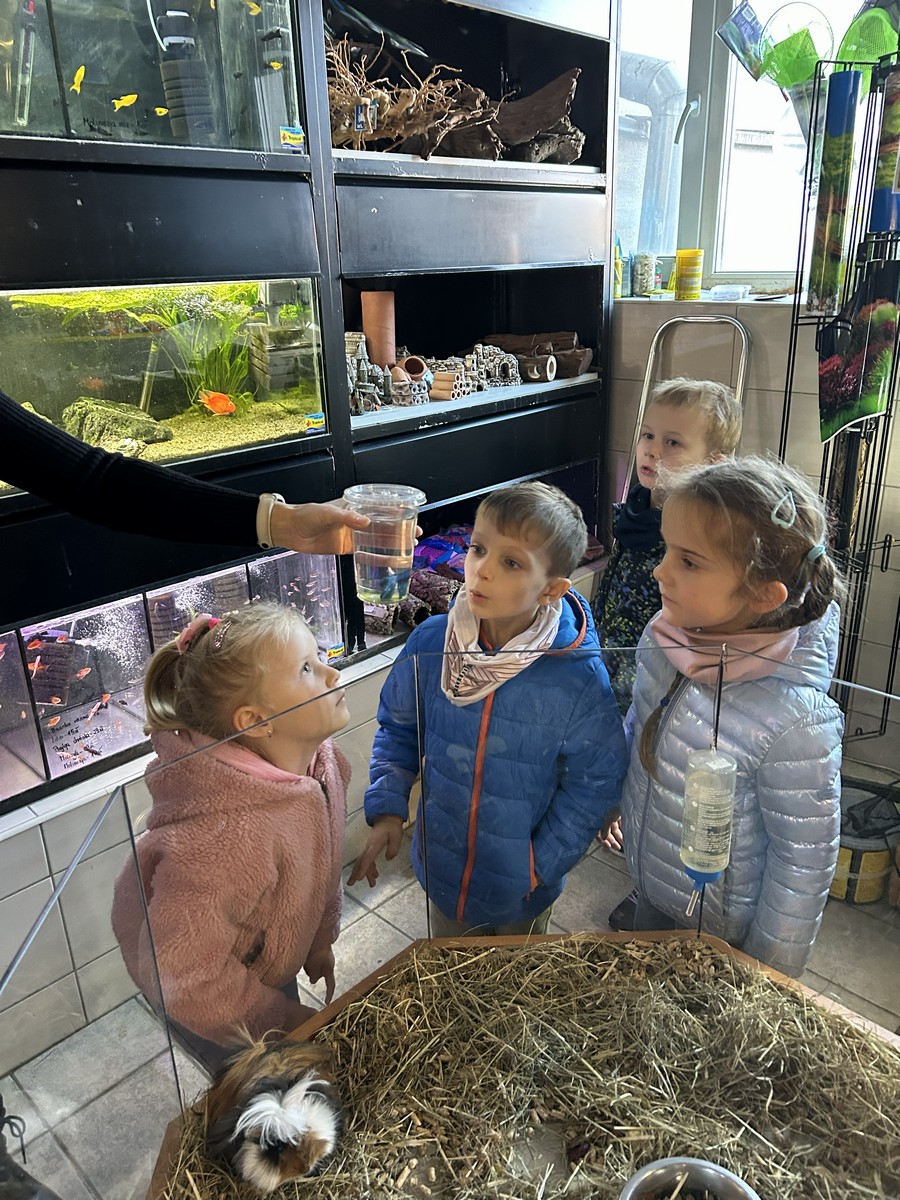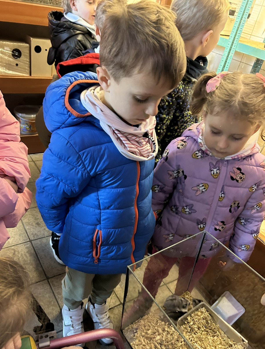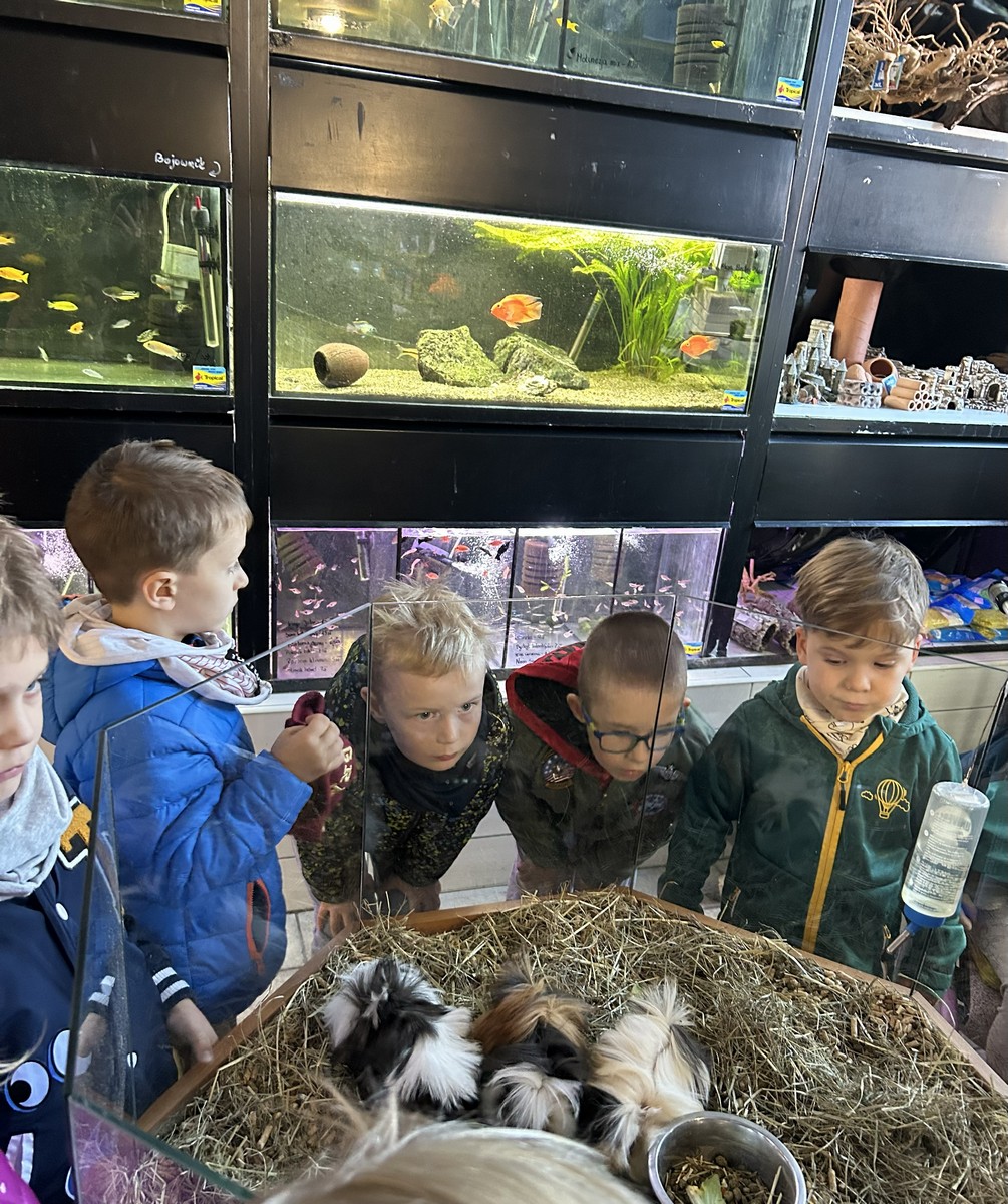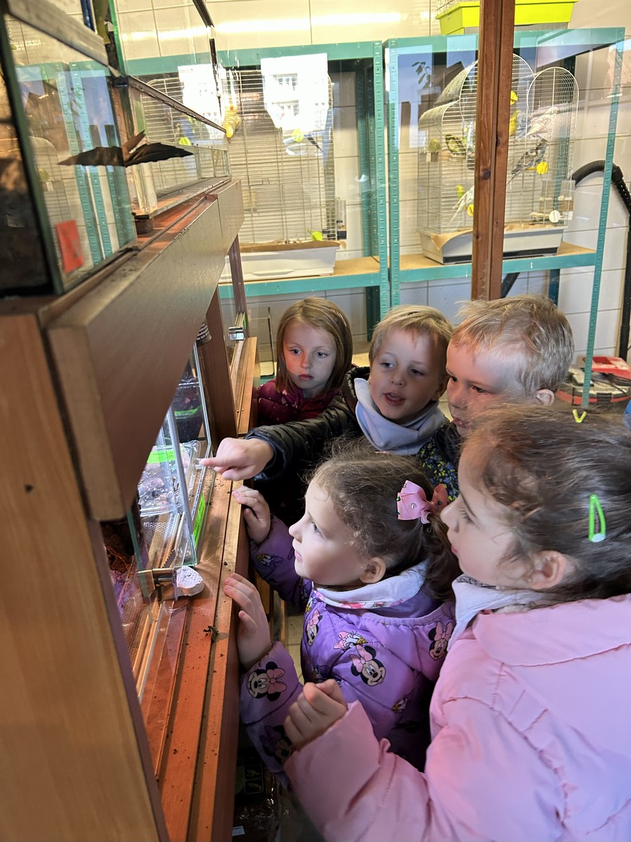31 października Średniaki podczas wizyty w sklepie zoologicznym „Delfin” w Dębicy miały okazję bezpośrednio obserwować różne gatunki zwierząt. Poznały ich zwyczaje, tryb życia oraz dowiedziały się, czym się odżywiają. Dzieci zrozumiały, że posiadanie zwierzątka to nie tylko przyjemność, ale przede wszystkim duża odpowiedzialność i obowiązek dbania o nie. Wycieczka była dla przedszkolaków wspaniałą przygodą i cenną lekcją szacunku do świata przyrody.