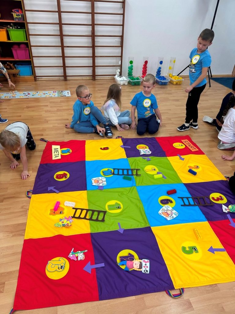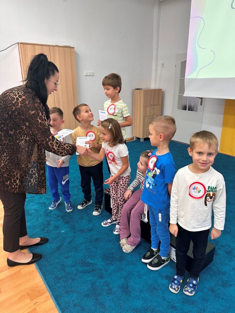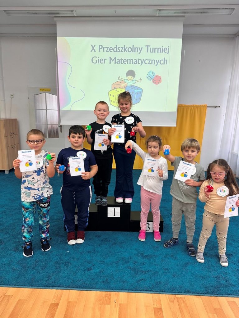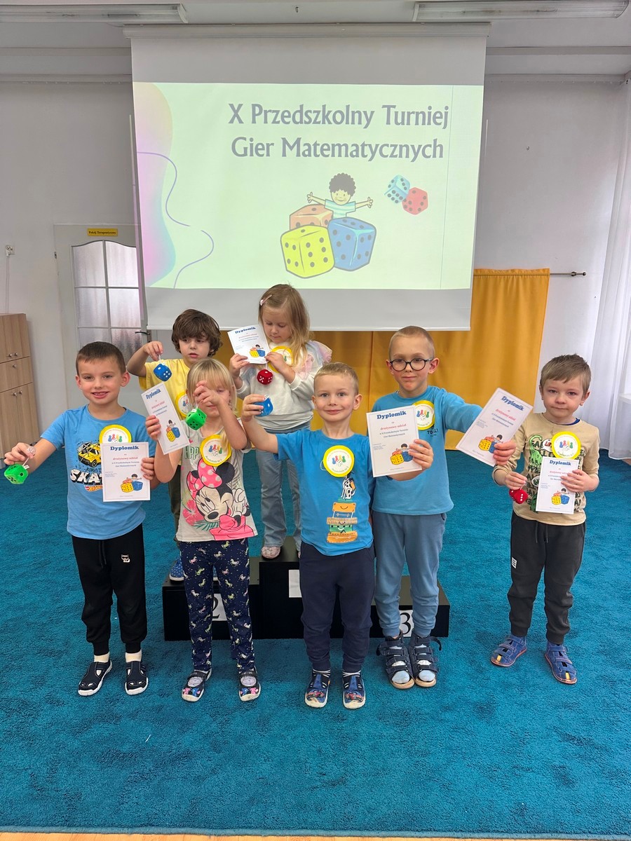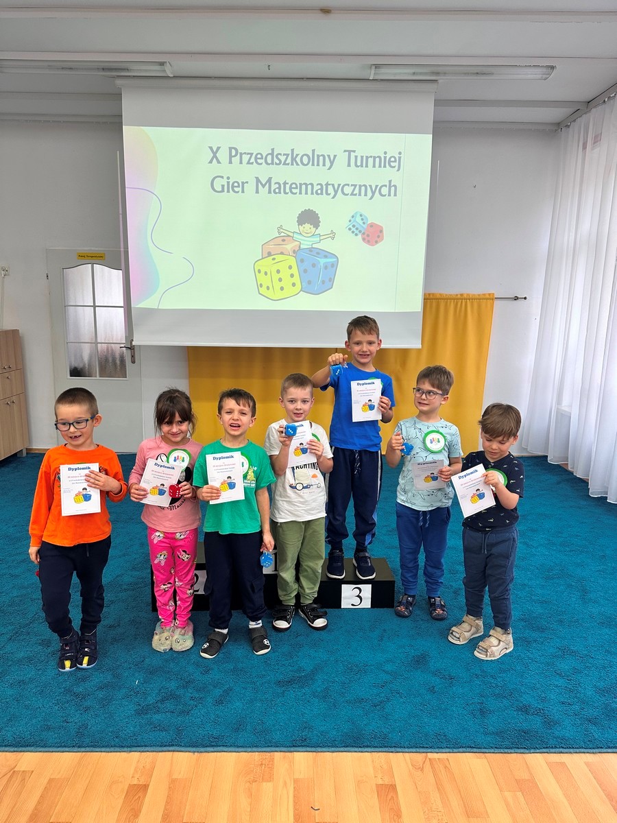 W dniu 17 listopada 2025r. dzieci z grupy III i IV uczestniczyły w „X Turnieju Gier Matematycznych”. Przedszkolaki podzielone na 5 drużyn, w radosnym nastroju rywalizowały ze sobą. Na każdym etapie turniejowym towarzyszyło im poczucie sukcesu dzięki zdobywanym punktom. Na pamiątkę wszyscy otrzymali nagrody i dyplomy.