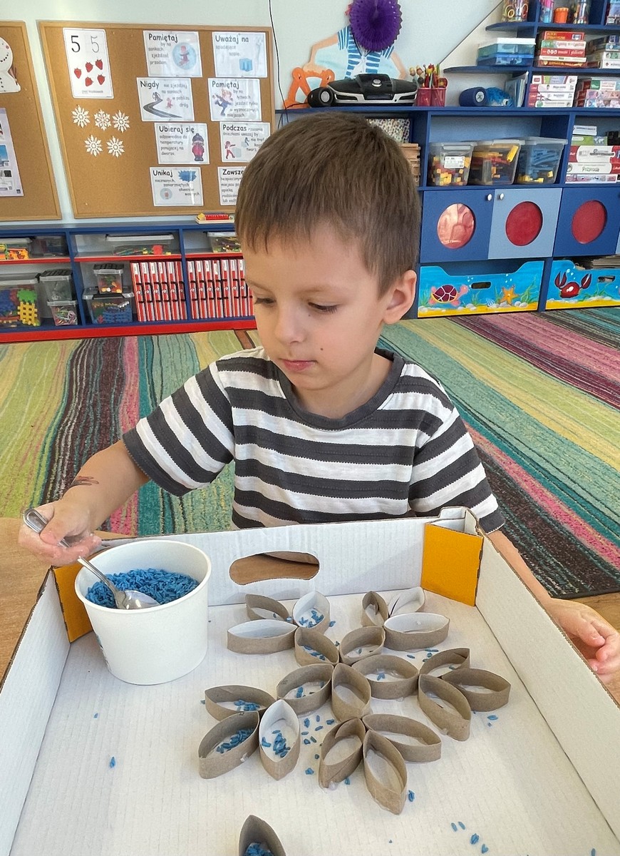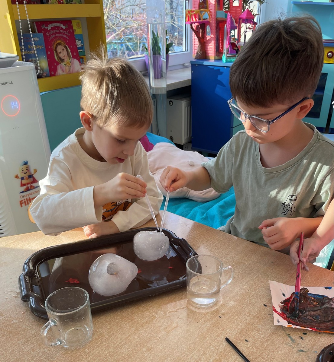 Podczas zimowych zajęć sensorycznych dzieci miały okazję doświadczać i poznawać świat za pomocą zmysłów. Przedszkolaki uczestniczyły w różnorodnych aktywnościach inspirowanych zimową tematyką – dotykały, przesypywały, ugniatały i eksperymentowały z różnymi materiałami. Dzieci z ogromnym zainteresowaniem odkrywały nowe faktury i struktury, doskonale się przy tym bawiąc.